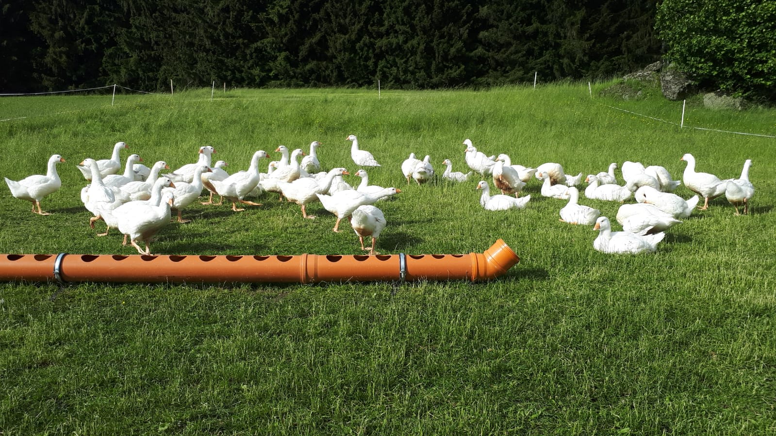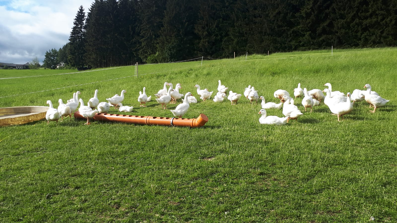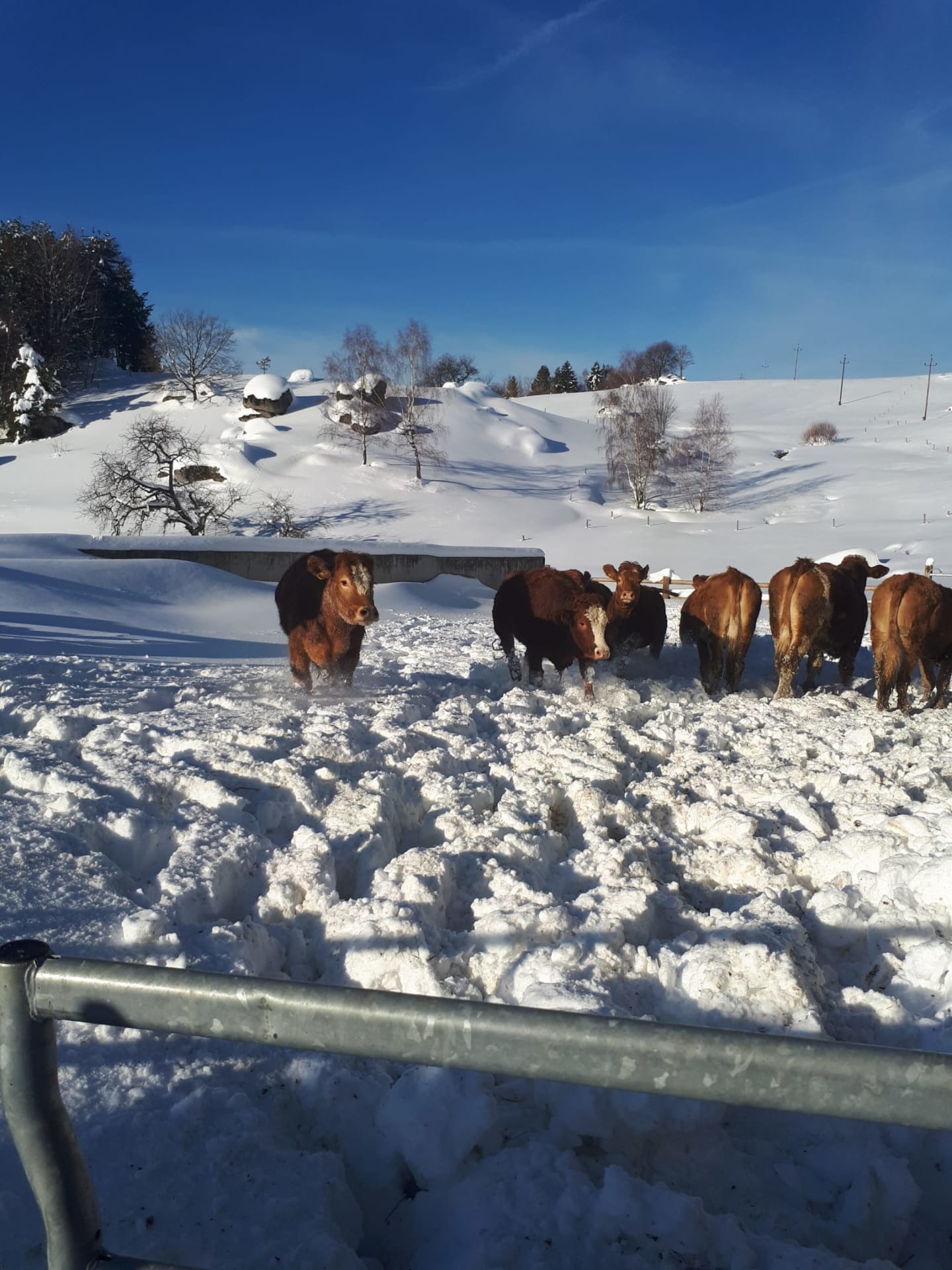 Die Stalltür steht unseren Gästen jederzeit offen! Unsere Kühe und Kälber sind den ganzen Sommer lang draußen auf der Weide und kommen jeden Abend heim in den Stall zum Schlafen und Fressen. Ab Mai sind unsere Weidegänse wieder auf den Wiesen zu sehen und unsere beiden Schweine stehen im Stall.