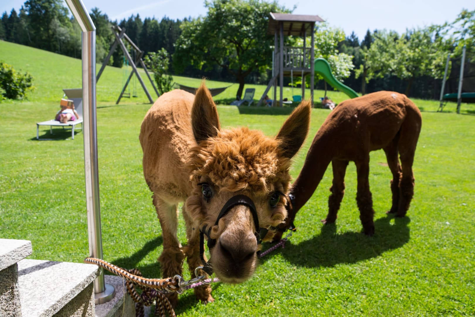 Für unsere kleine Gäste gibt es viel zu erleben, auch neben dem winterlichen Vergnügen: Mithilfe am Hof, Hasen und Katzen zum Streicheln, Kühe und Kälber und Hofhund Tina. Die beiden Alpakas MOMO und BORIS freuen sich, wenn sie einen Spaziergang machen können oder sie in ihrem Stall besucht werden.