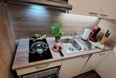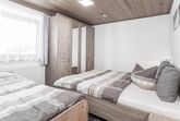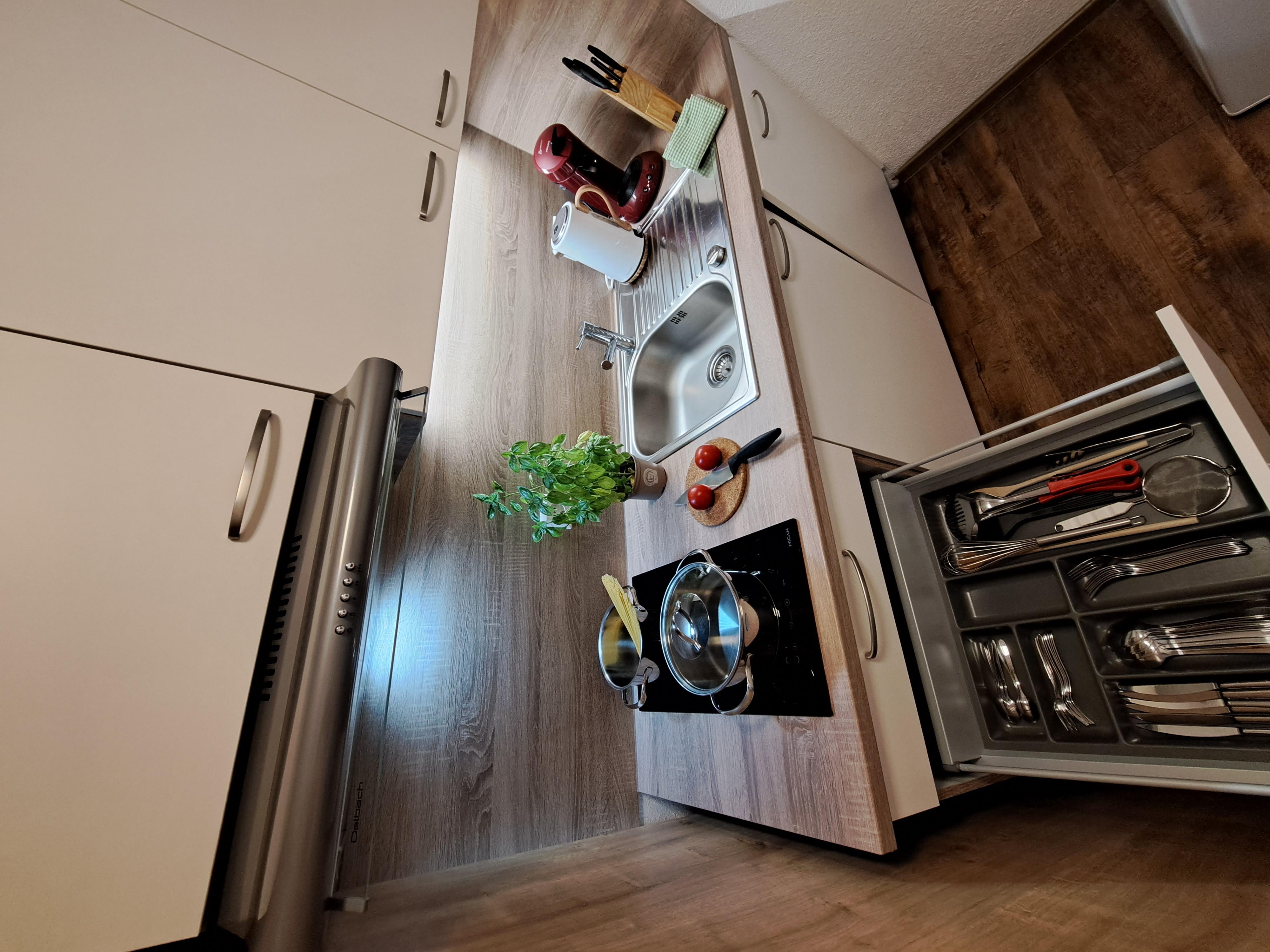 2 getrennte Schlafzimmer mit 2 Badezimmern (1x Dusche/WC, 1x Bad/WC), Safe, Wohn-Schlafraum (Ausziehcouch für 1 Person) mit Essecke, Flat TV, Radio und Balkon. Die Küche ist ausgestattet mit Elektroherd mit 2 Kochplatten, Kühlschrank, Mikrowelle, Geschirrspüler, Geschirr, Kaffeemaschine und Wasserkocher. Größe ca. 60 m²