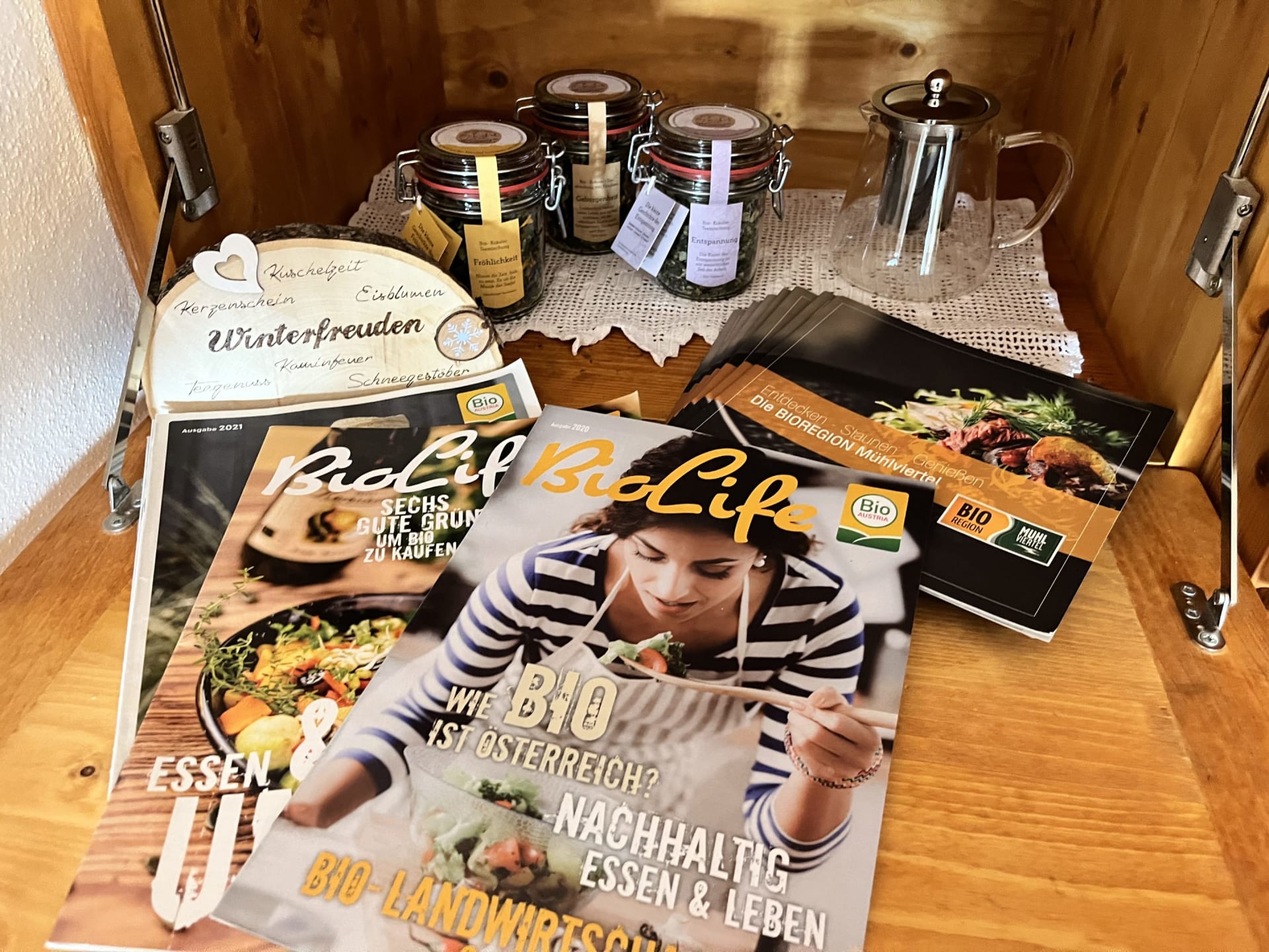 Bei uns am Biberhof finden dein Körper und deine Seele ihren Frieden und die notwendige Entspannung und Erdung! Lass dich ein auf die Geschenke der Natur beim Waldluftbaden oder bei einem Spaziergang durch die wunderbare mühlviertler Schneelandschaft. Genieß den Duft der klaren, frischen Luft und die heilende Wirkung der Erholung. Nimm dir Zeit für eine Tasse Tee aus dem Kräutergarten, vielleicht mit einem Buch, beim süßlichem Duft der hauseigenen Teesorte Geborgenheit. 3 Sorten Kräutertee stehen Dir im Winter kostenlos zum Genuss zur Verfügung.