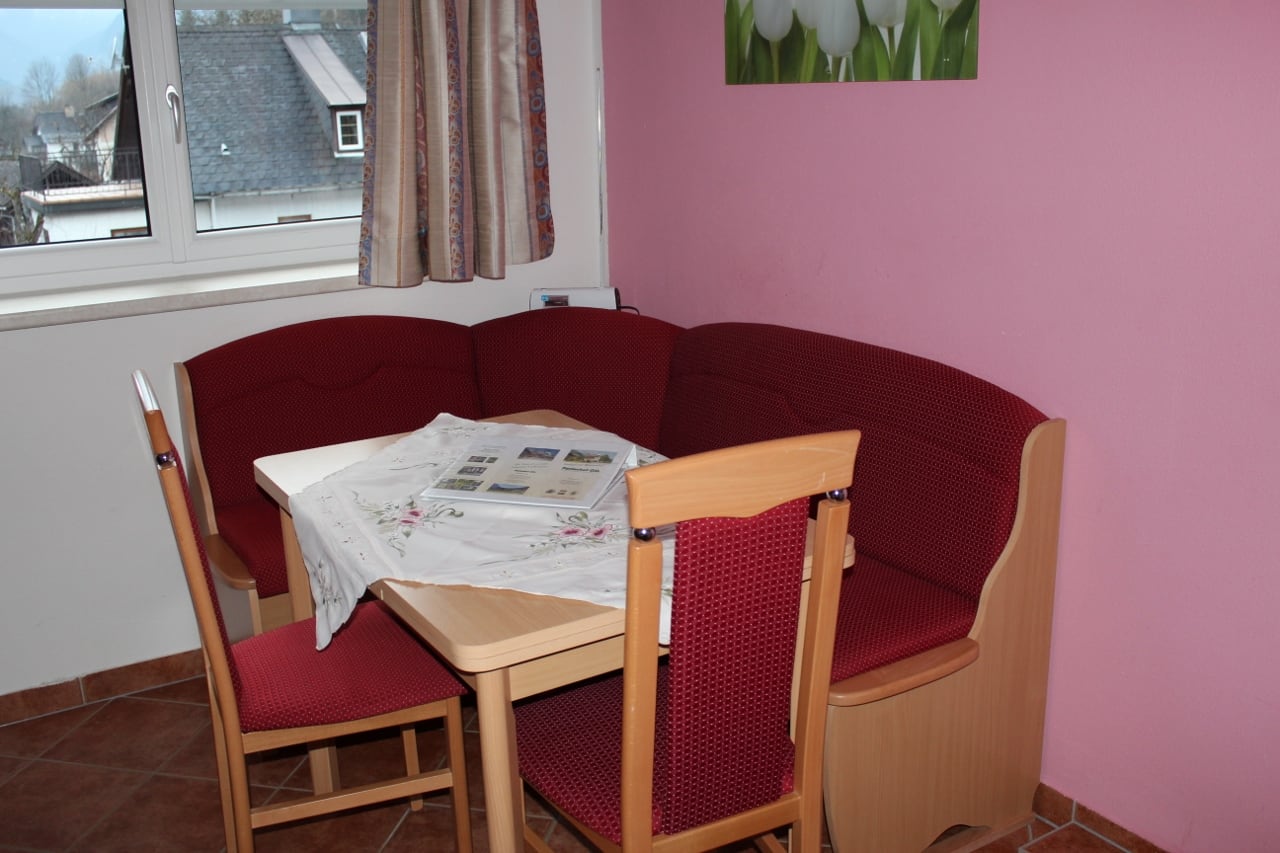 Unsere Ferienwohnung TULPE ist eine freundliche, gemütliche Wohnung.Das Doppelbett im Schlafzimmer hat ein freies Fußende, daher auch für große Personen gut geeignet. Das Jugendzimmer hat Etagenbett. Von der Sitzecke in der Wohnküche haben Sie einen herrlichen Ausblick in die Bergwelt der Umgebung. Radio und Sat-TV ist im Wohnraum. Bettwäsche,Dusch-und Handtücher, sowie Geschirrtücher sind vorhanden.