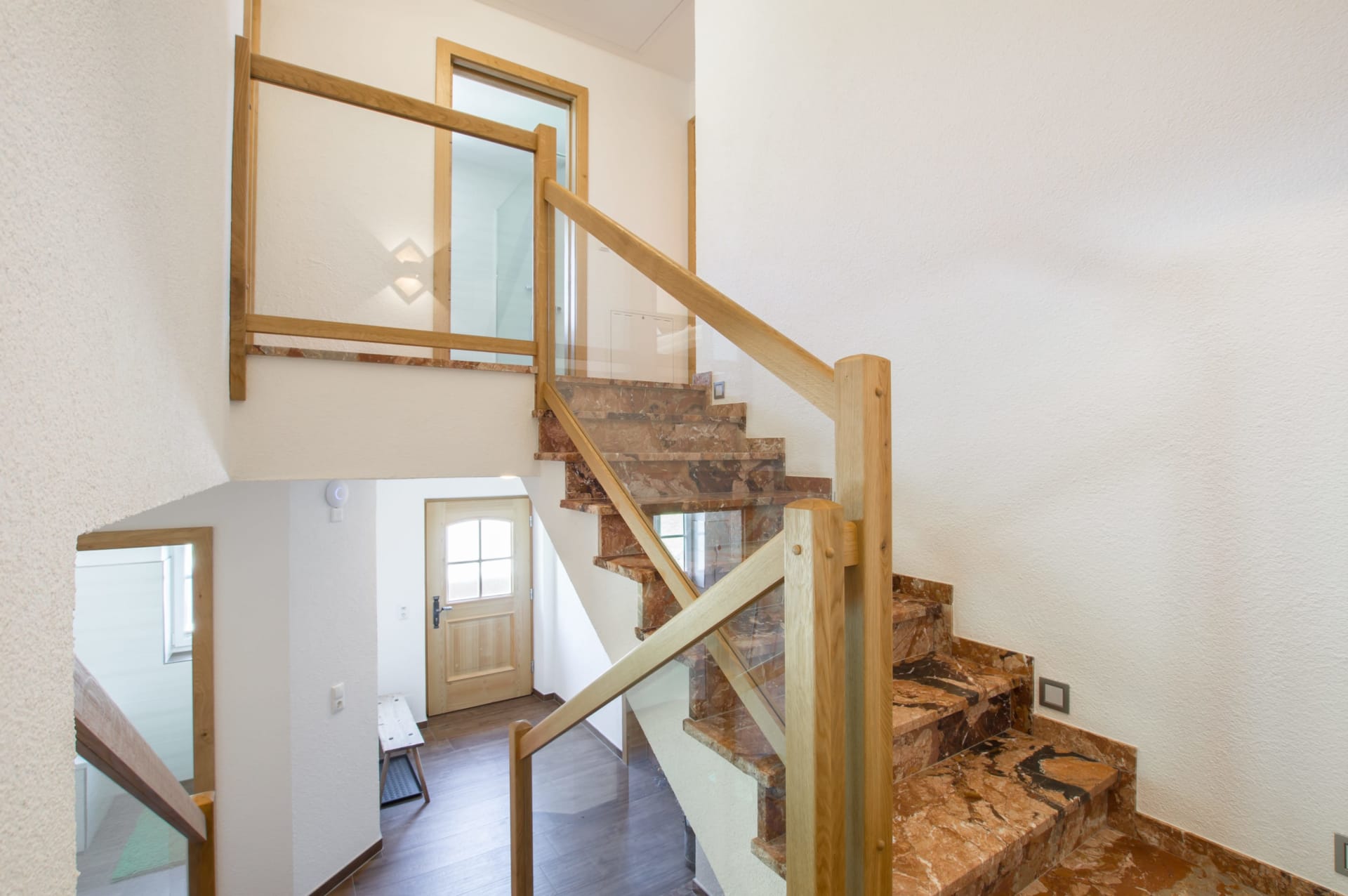 Ferienwohnung im zweiten Stock mit Balkon und Seeblick.