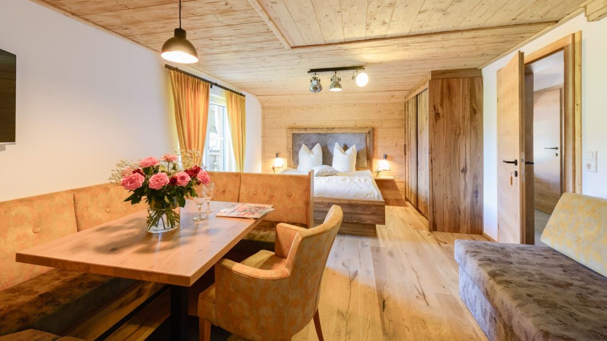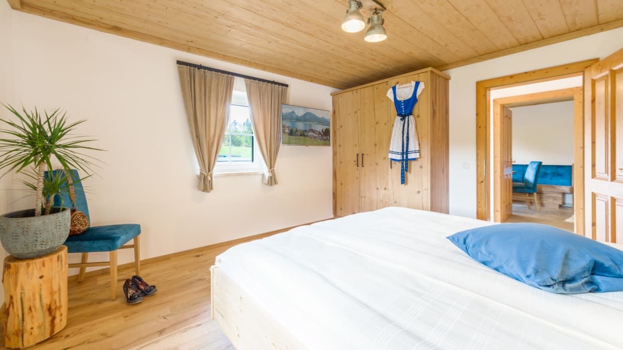 Machen Sie Urlaub in unseren gemütlichen und komfortablen Zimmern und Ferienwohnungen. Genießen Sie die verträumte Lage des Hofes und den Wolfgangsee mit seinem herrlichen Panorama. Unser Erbhof hat mehr als vier Wände.