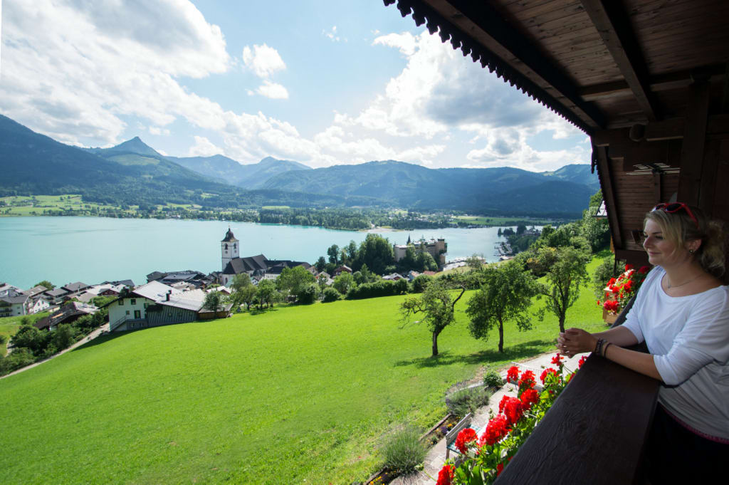 Unser Alleinstellungsmerkmal ist der atemberaubende Blick auf den malerischen Wolfgangsee – nirgendwo sonst können Sie einen derart traumhaften Ausblick auf dieses Juwel des Salzkammergutes genießen. Nehmen Sie auf unserer Panorama-Sonnenterasse auf einer unserer Liegen Platz oder machen Sie es sich am privaten Balkon gemütlich - die unbeschreibliche Kulisse mit der Wallfahrtskirche im Ort, dem anmutigen Wolfgangsee sowie der Gebirgswelt des inneren Salzkammergutes wird sie in Staunen versetzen!