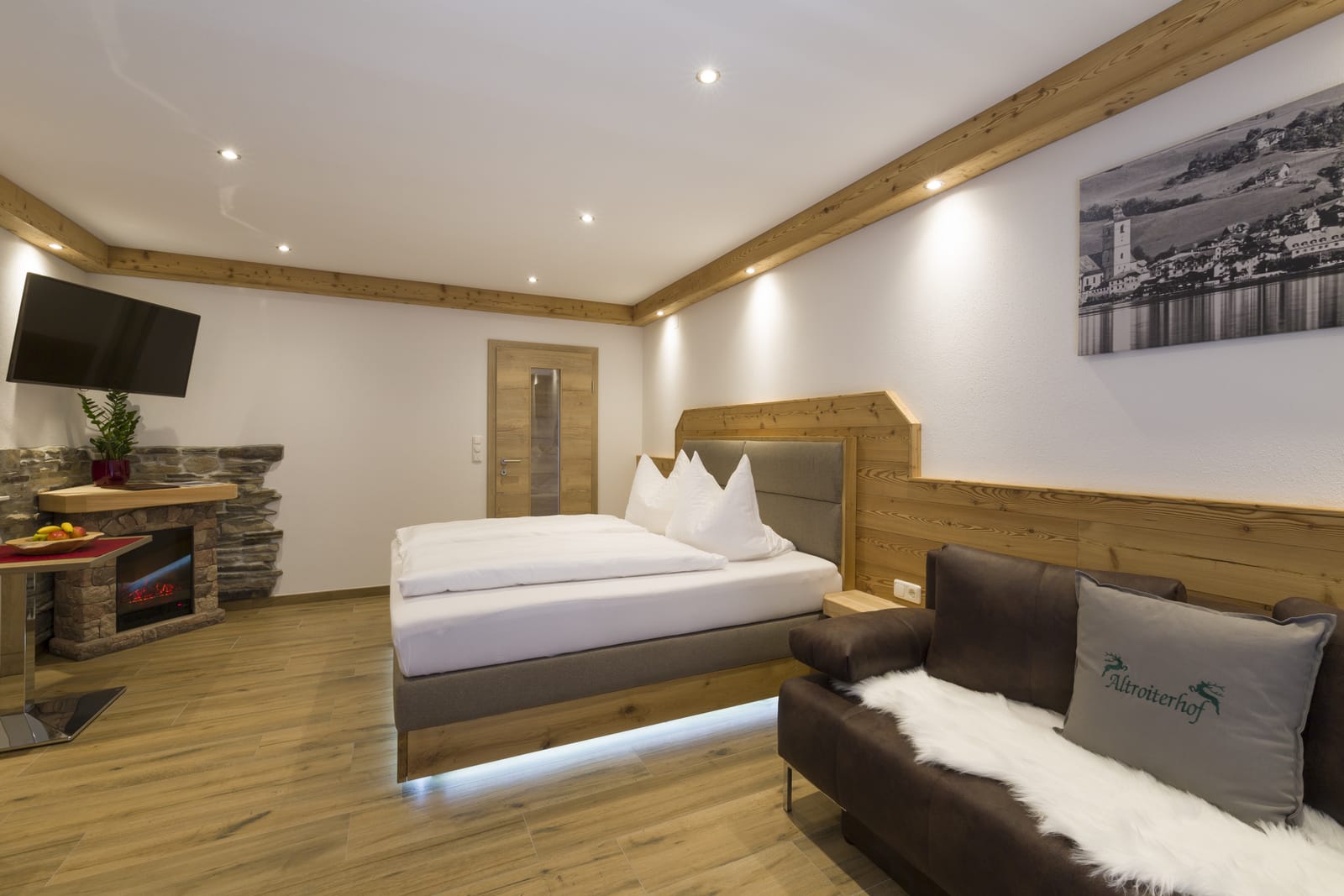 Mit dem Um- und Ausbau unses Altroiterhofes haben wir exklusiv-traditionell moderne Chalets, Apartments und Deluxe-Doppelzimmer dazugewonnen. Wir wahren die oberösterreichische Gastfreundschaft – regionales, nachhaltiges Wirtschaften steht bei uns an oberster Stelle. Diese Werte sind für uns nicht nur Floskeln, wir leben diese Grundsätze im täglichen Tun.