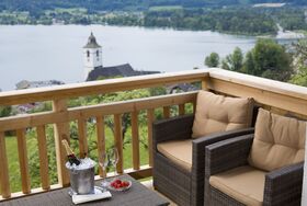 Unser Alleinstellungsmerkmal ist der atemberaubende Blick auf den malerischen Wolfgangsee – nirgendwo sonst können Sie einen derart traumhaften Ausblick auf dieses Juwel des Salzkammergutes genießen. Nehmen Sie auf unserer Panorama-Sonnenterasse auf einer unserer Liegen Platz oder machen Sie es sich am privaten Balkon gemütlich - die unbeschreibliche Kulisse mit der Wallfahrtskirche im Ort, dem anmutigen Wolfgangsee sowie der Gebirgswelt des inneren Salzkammergutes wird sie in Staunen versetzen!