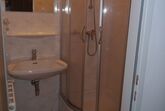 Schönes Appartement mit hellen Vollholzmöbeln, Küchenzeile mit Geschirrspüler, Sitzecke und gemütlichem Couchsessel, Flachbildfernseher.