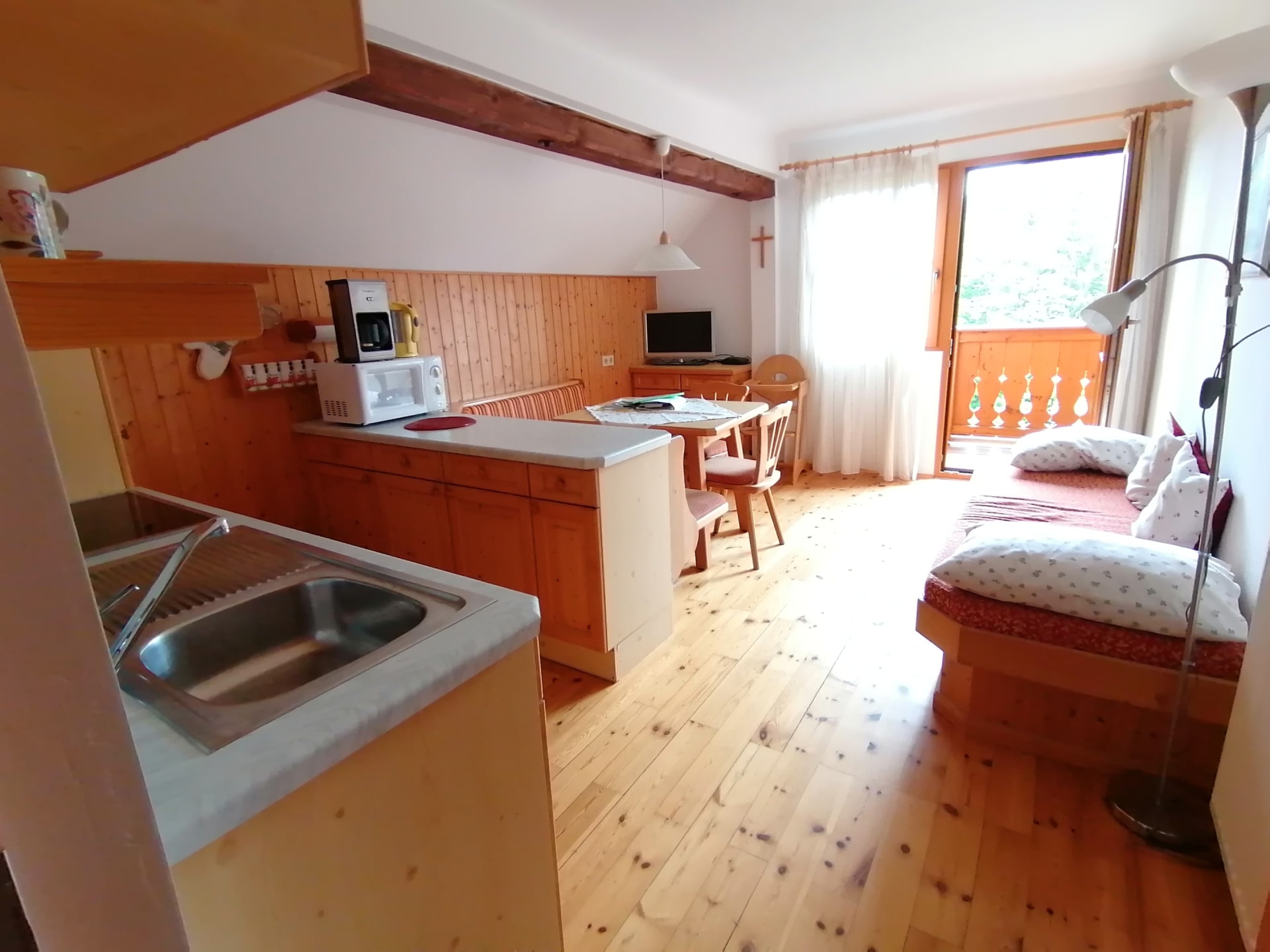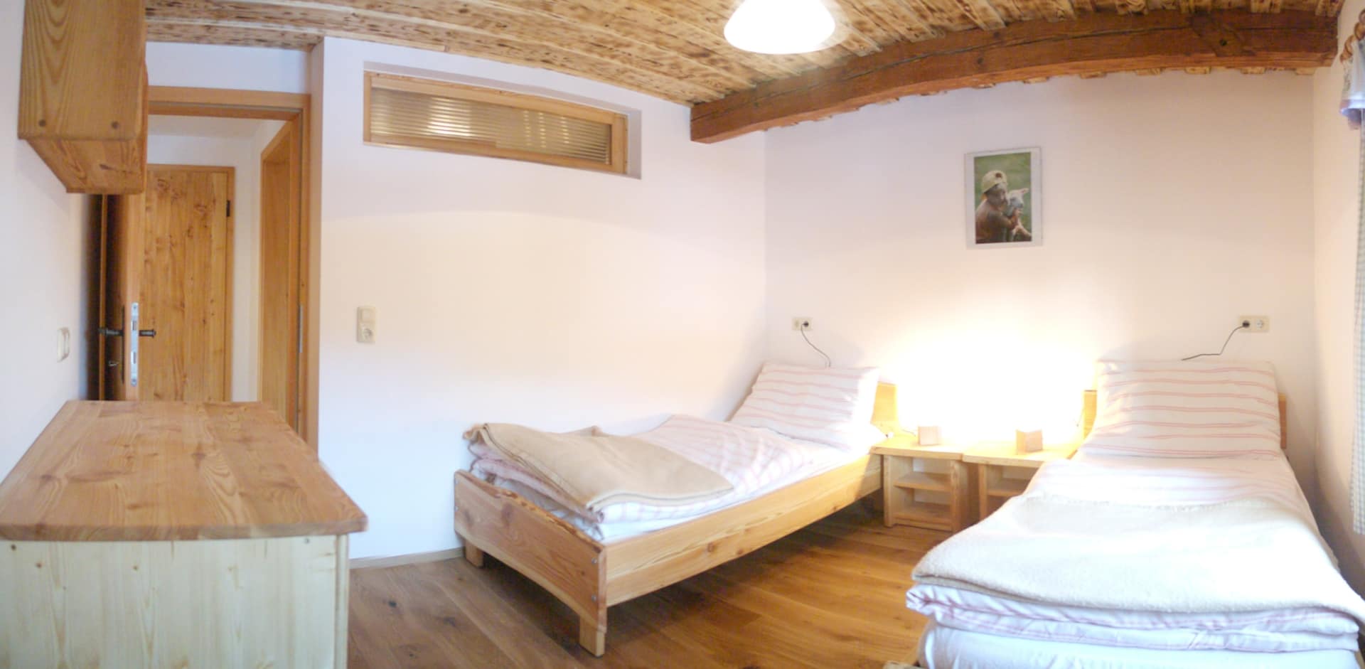 Die Gästeküche befindet sich ebenfalls im 1. Stock. Das Ponyzimmer findet ihr nach dem Katzenzimmer. Für Familien mit größeren Kindern eignen sich das Katzenzimmer und das Ponyzimmer zusammen.