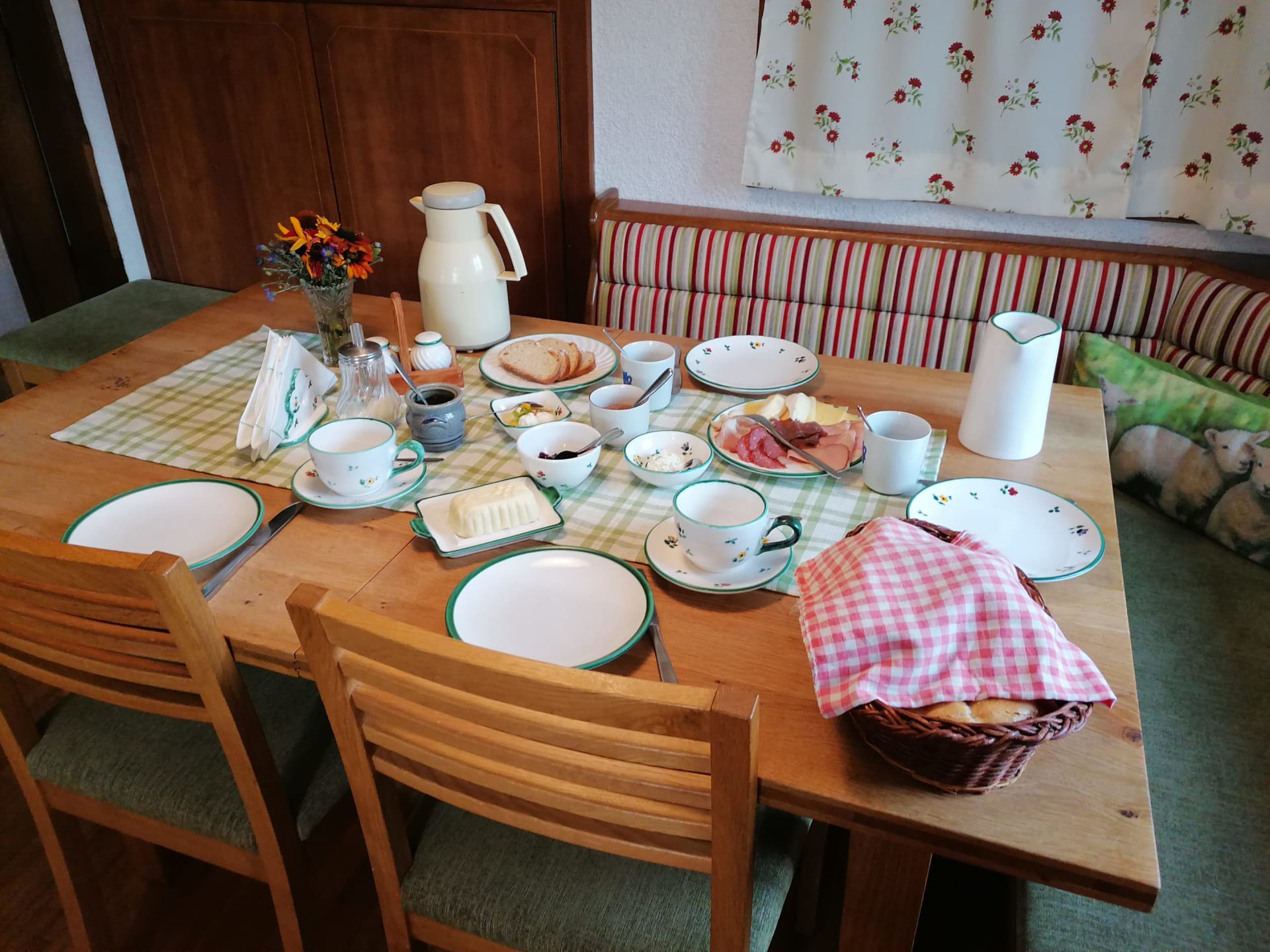 Mit köstlichen, hausgemachten Produkten aus der eigenen biologischen Landwirtschaft verwöhnen wir euch beim Frühstück. Zum Abendessen kochen wir für euch regionale Hausmannskost.