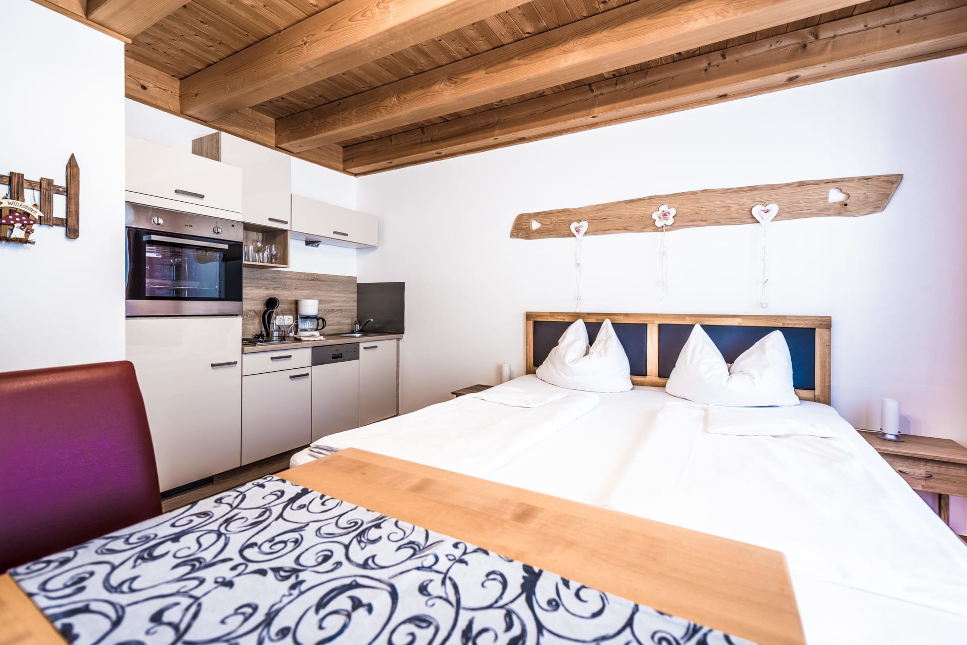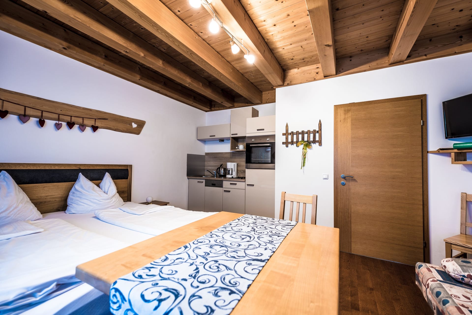 Neu gebaut, aus heimischem Holz, urgemütlich und behaglich. Lichtdurchflutetes Schlafzimmer mit Vollholzmöbeln, integrierte Küchenzeile, Terrasse, Vorraum mit Garderobe, großzügiges Badezimmer (Dusche) und getrenntes WC. In dieser Behaglichkeit werden Sie sich garantiert wohlfühlen. Das Appartement befindet sich im Erdgeschoß. KEINE STUFEN im Wohn- und Hofbereich.