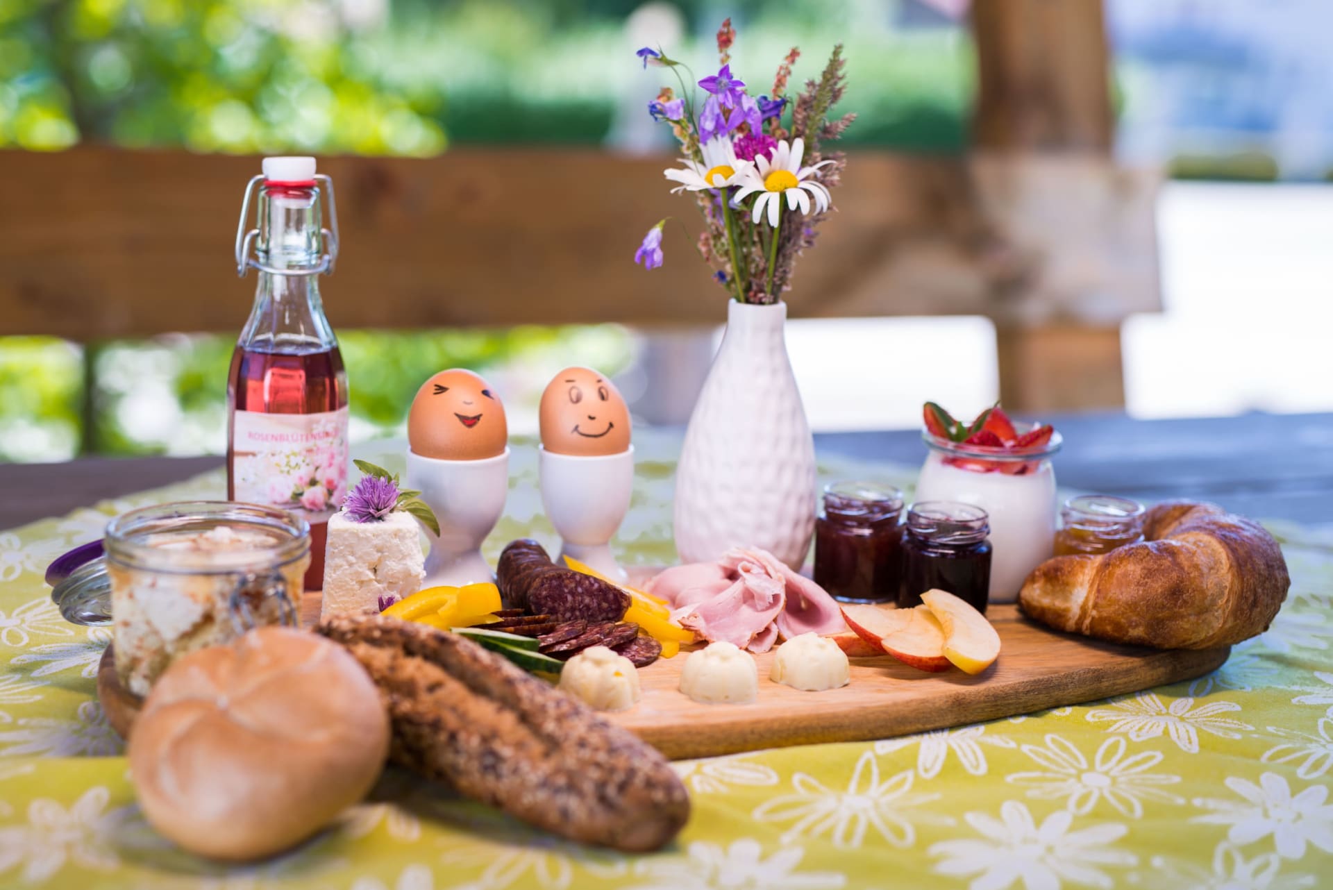 Erwachen Sie mit den ersten Sonnenstrahlen und freuen Sie sich auf beste Schmankerl von unserem Bio-Frühstücksservice - ofenfrisches Gebäck, hofeigene Eier, Marmeladen, Obstsäfte,... - direkt vor die Wohnungstür geliefert. Das sorgt für einen guten Start in den Tag!