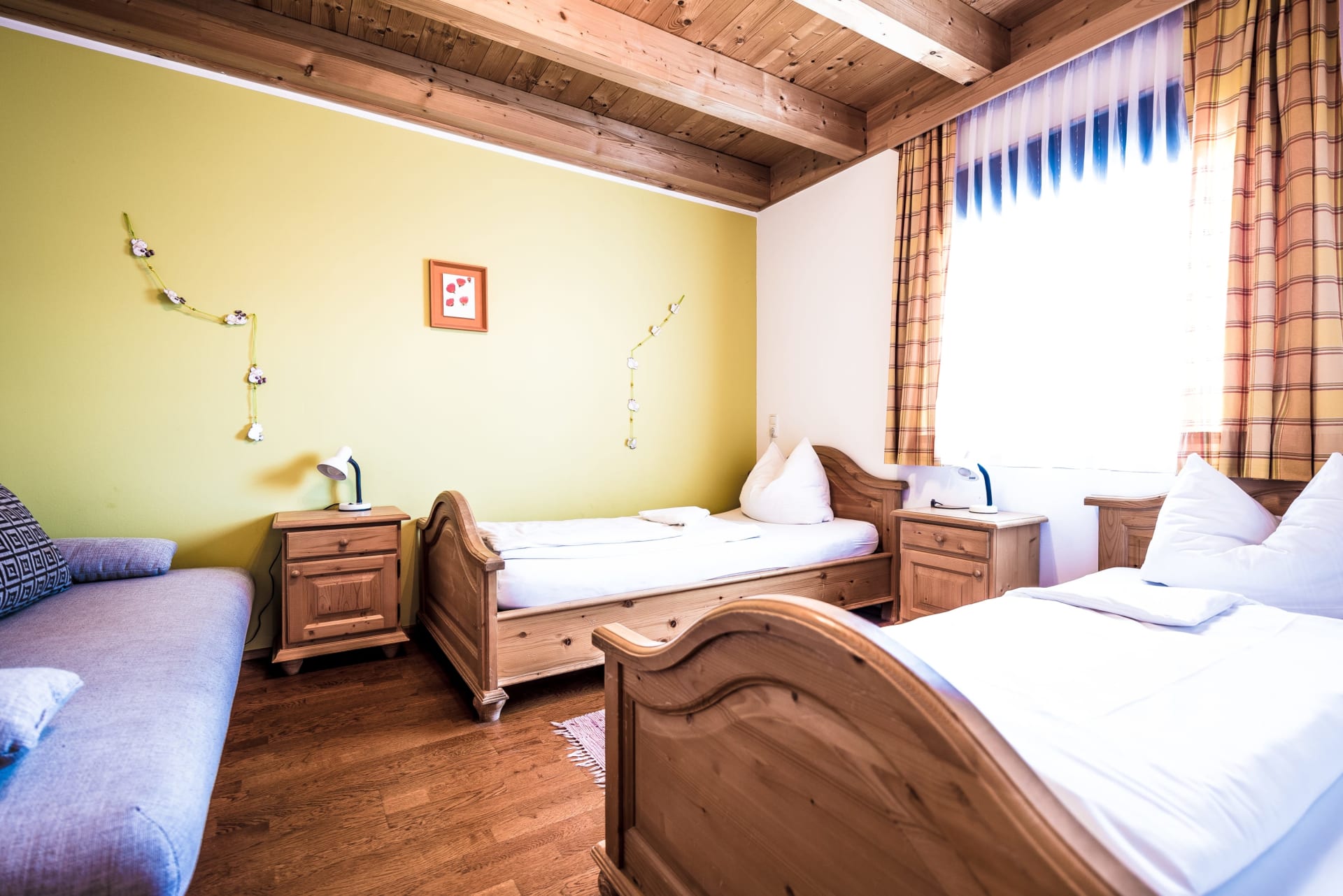 In unseren geräumigen Appartements findet jeder genügend Platz. Für Groß und Klein gibt es je ein separates Zimmer und einen gemütlichen Wohnraum mit Sat-TV. Wenn Sie sich gerne selbst versorgen, sind unsere Küchen bestens dafür ausgestattet. Für ein gemütliches Nickerchen an der frischen Luft steht Ihnen ein Balkon zur Verfügung. In unseren Appartements werden Sie sich garantiert wohlfühlen.