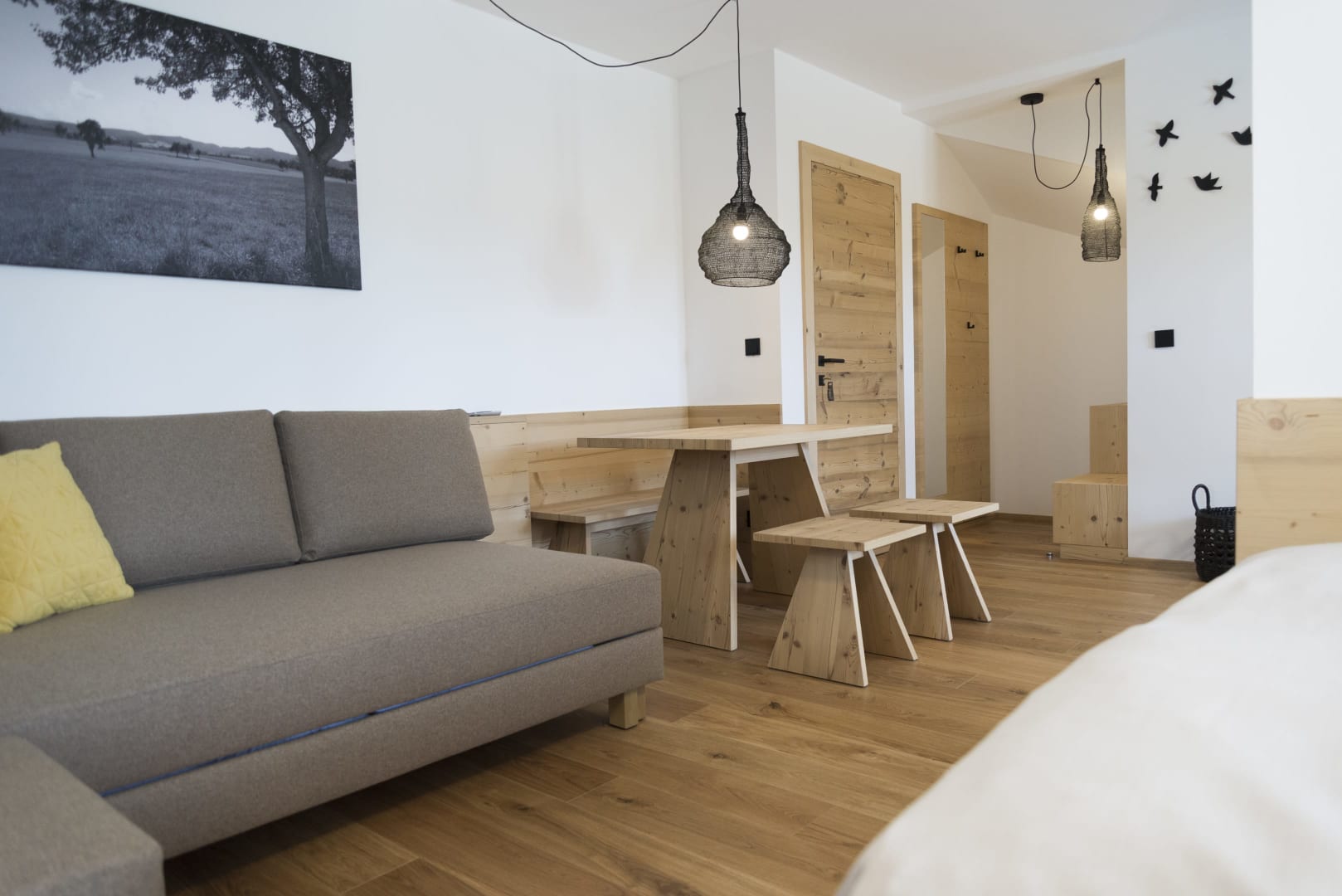 Bei uns am Hof befinden sich Zimmer und Ferienwohnungen für bis zu 8 Personen, die mit Vollholzmöbeln ausgestattet sind. Es wurde viel Wert auf die Verwendung natürlicher Materialien gelegt. Die Auszeichnungen mit 5 Blumen und 4 Hotelsternen zeigen, dass wir dem höchsten Anspruch gerecht werden.