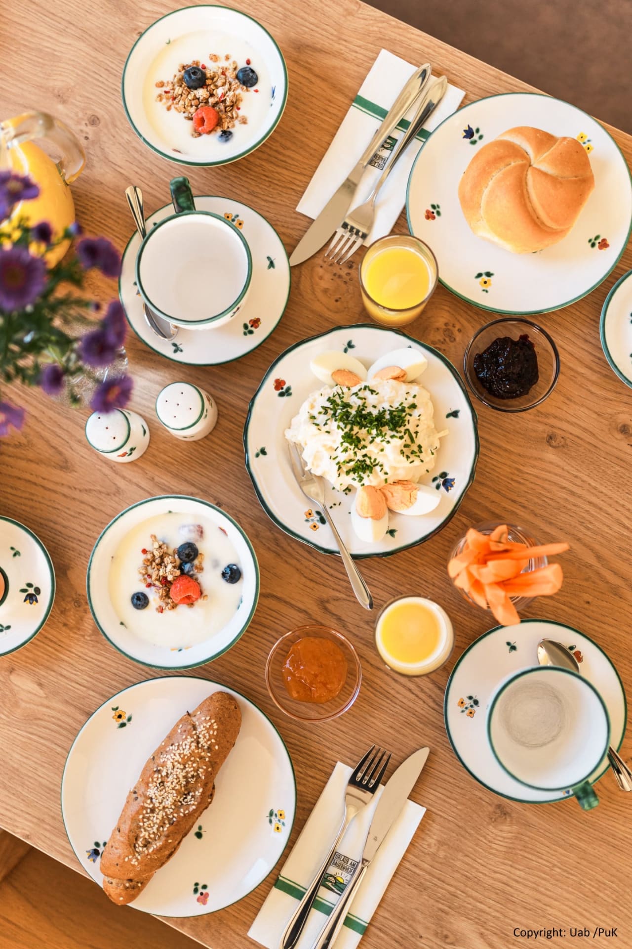 • Wir bieten folgende Verpflegung am Betrieb: Frühstück, Produkte vom eigenen Hof oder Hofladen, Brötchenservice