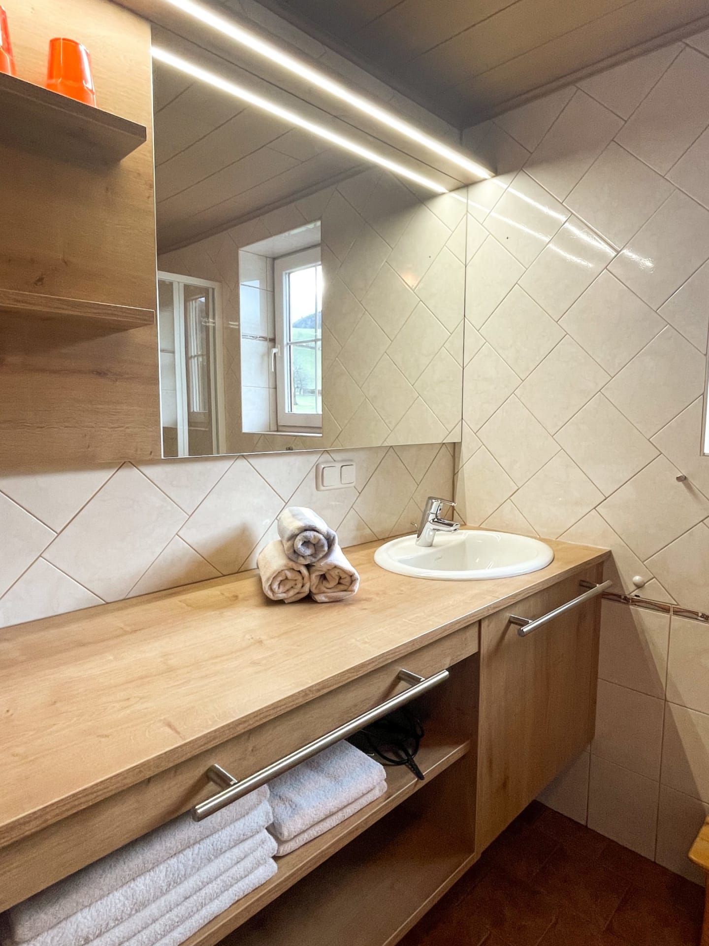 • 1 Bad mit Dusche, Badewanne, Waschtisch und Föhn