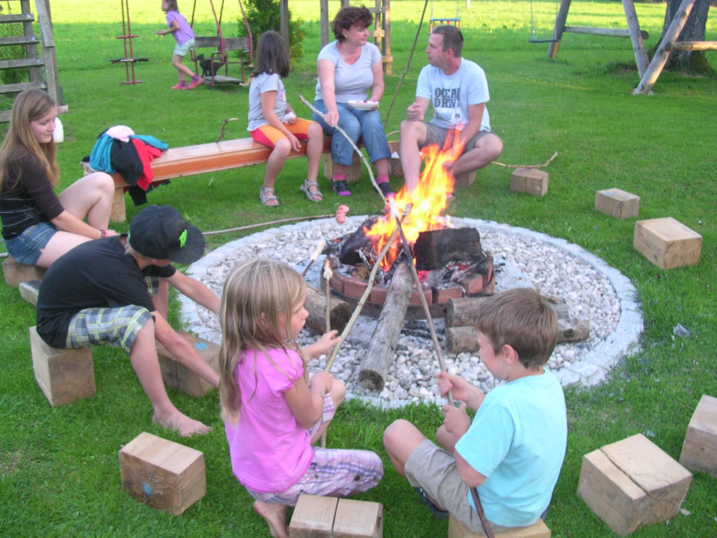 • Großer Garten mit Griller, Spielplatz, Sitzgelegenheiten, Naturschwimmteich mit Liegestühlen