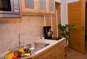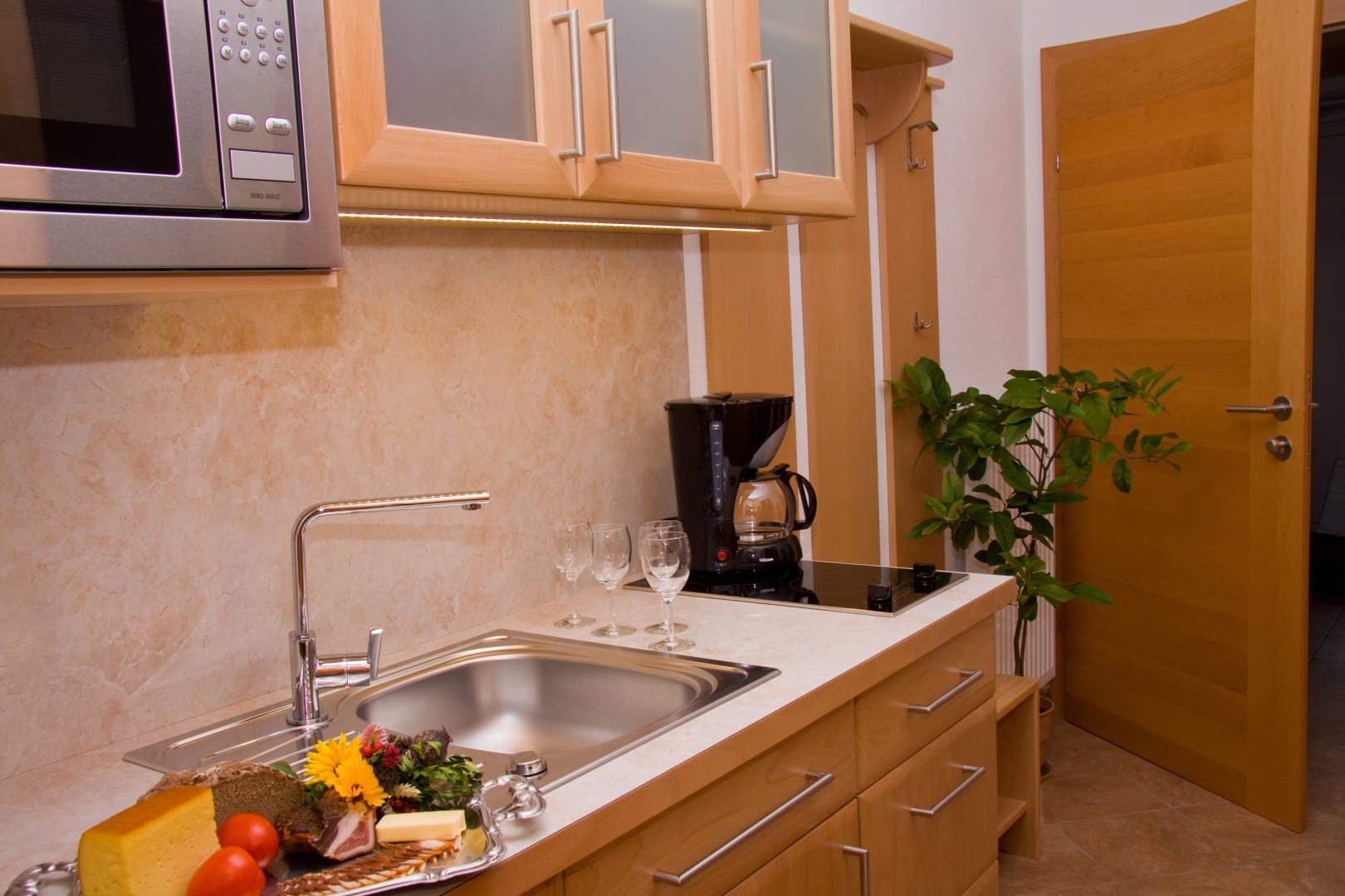 HÖSS ALM - Apartment für 2 Personen mit Terrasse und Aussicht auf viele 2000er, SAT TV und gratis Internet, Miniküche mit Kühlschrank.
