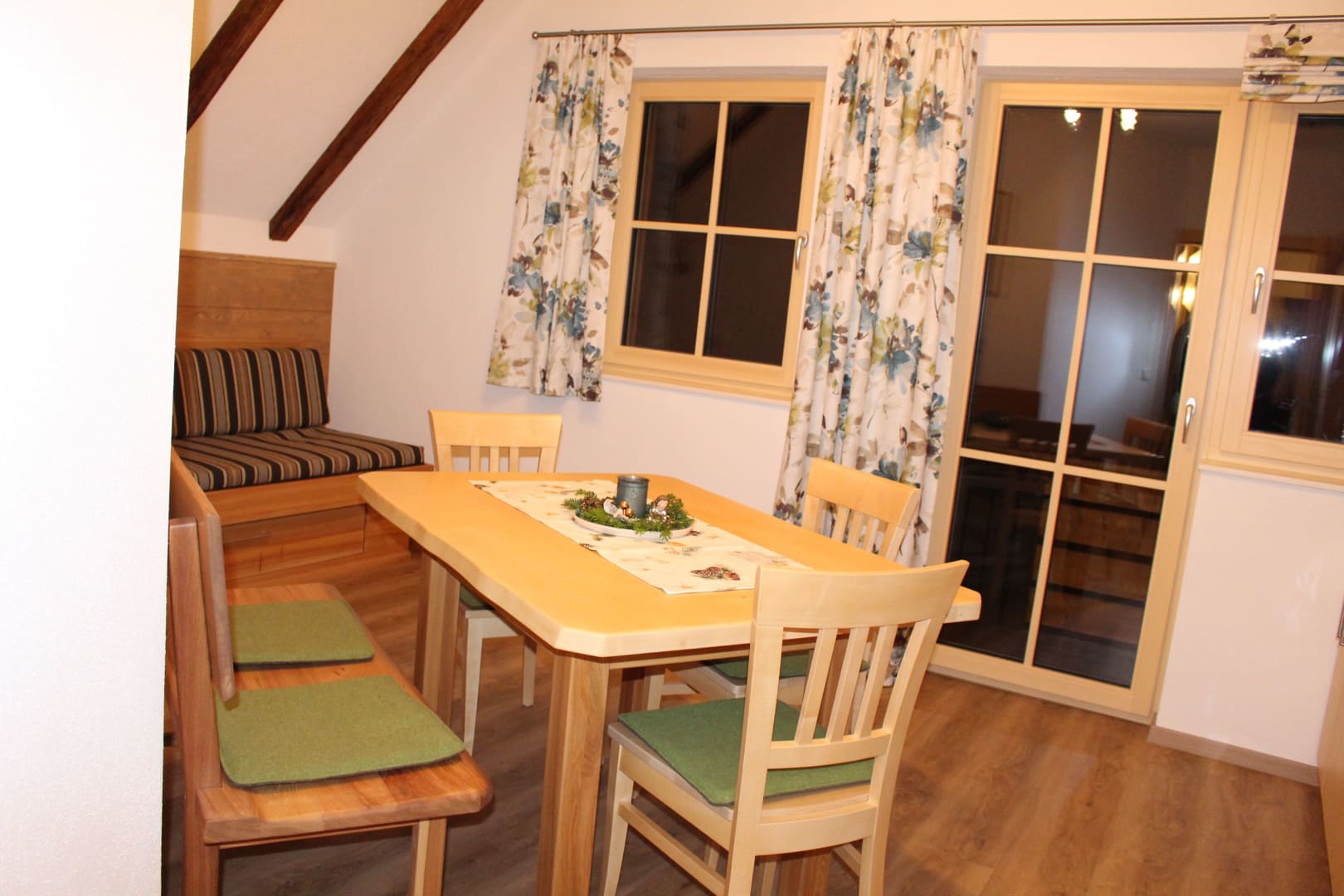 Bei uns erwarten Sie zwei neue Ferienwohnungen im Bauernhaus - ausgestattet mit Vollholzmöbeln, Panoramaschiebetür und Wohnraumlüftung, jeweils zwei getrennten Schlafzimmern und großzügigen Badezimmern mit Regenbrause. Im Gästehaus fühlen Sie sich so richtig wohl in unseren Ferienwohnungen, je 60 m² mit zwei getrennten Schlafzimmern, großer Terrasse oder Balkon und kostenlosem Internet.