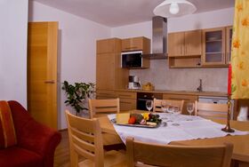 SCHMALZERALM - Ferienwohnung im Erdgeschoß mit großer 40 m² Terrasse, 2 getrennten Schlafzimmern, großer Wohnküche, SAT TV und gratis Internet, herrliche Aussicht auf viele 2000er.