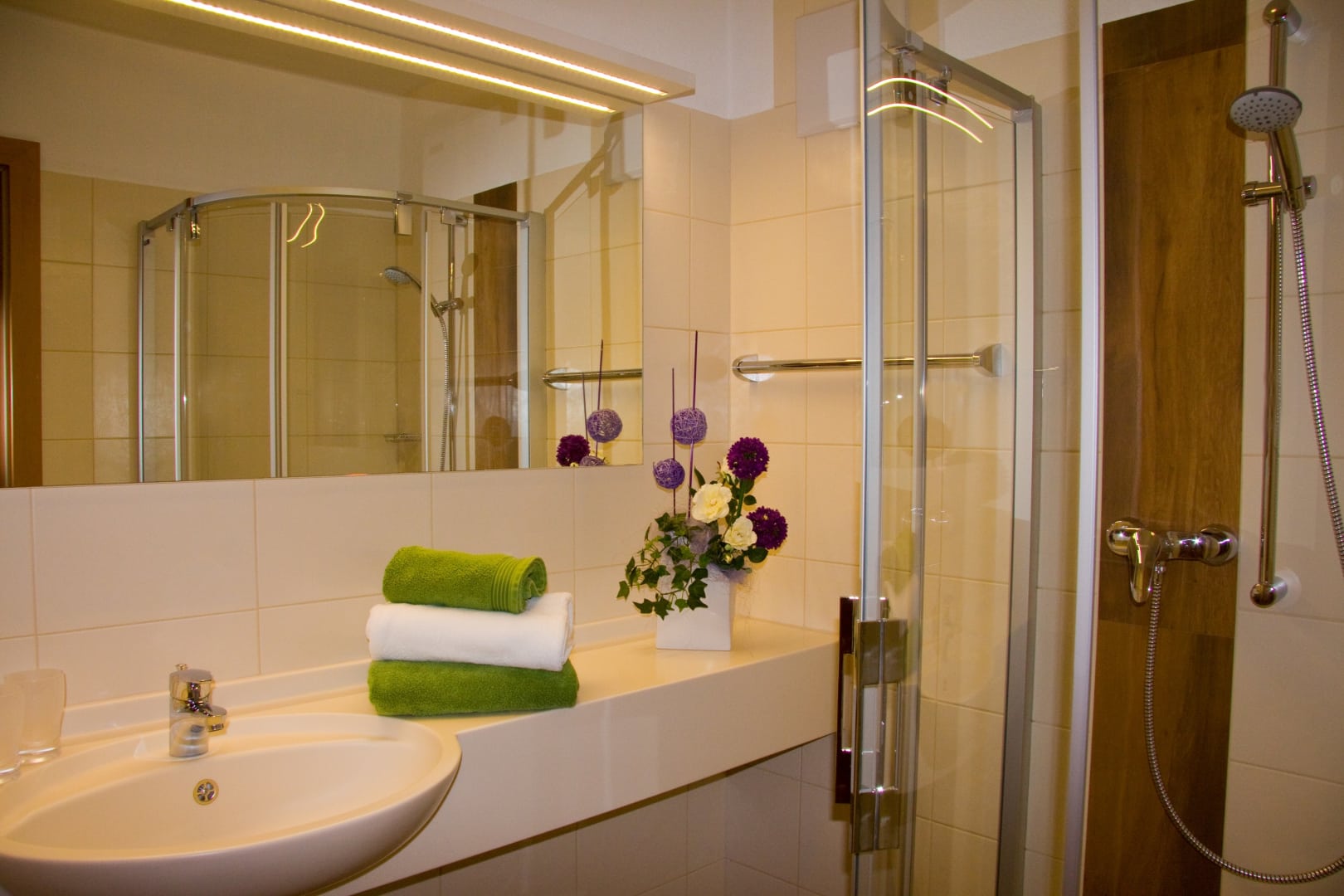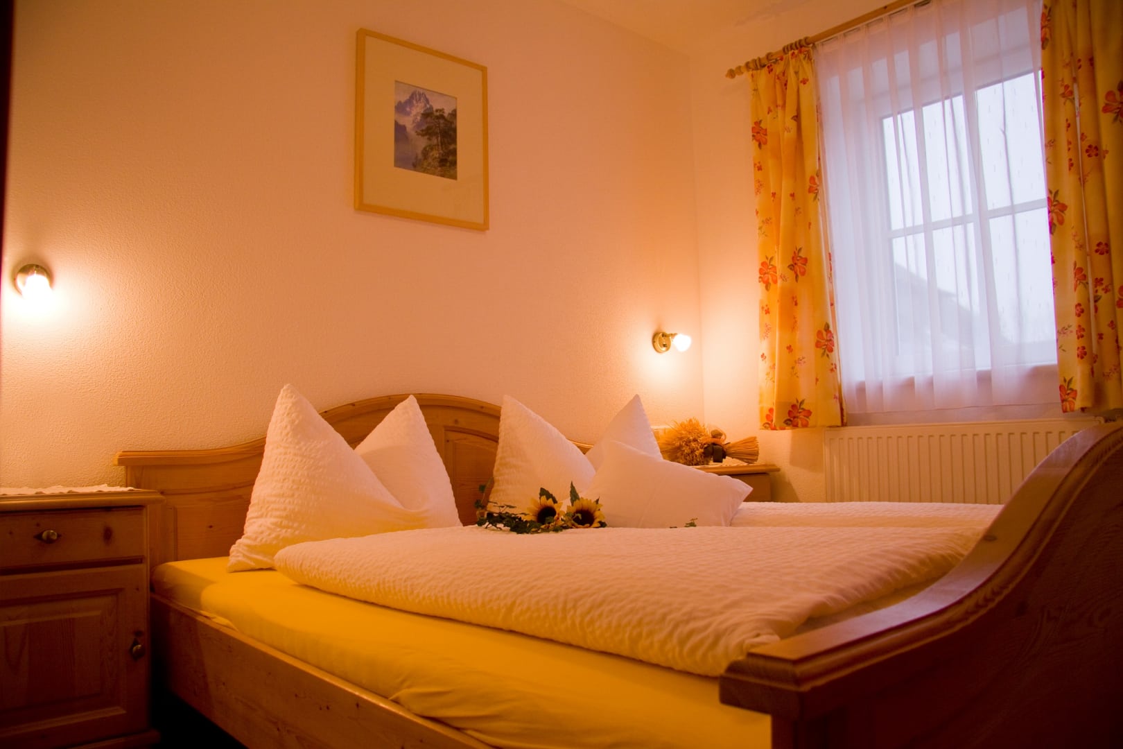 Bei uns erwarten Sie zwei neue Ferienwohnungen im Bauernhaus - ausgestattet mit Vollholzmöbeln, Panoramaschiebetür und Wohnraumlüftung, jeweils zwei getrennten Schlafzimmern und großzügigen Badezimmern mit Regenbrause. Im Gästehaus fühlen Sie sich so richtig wohl in unseren Ferienwohnungen, je 60 m² mit zwei getrennten Schlafzimmern, großer Terrasse oder Balkon und kostenlosem Internet.
