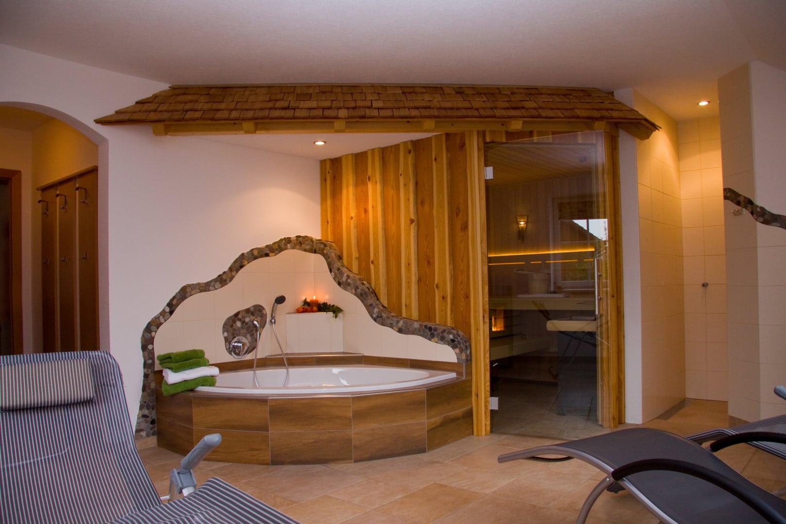 Im Haus steht eine Genuss-Panoramasauna zur Verfügung, Freizeitraum uind Kinderspielraum, großer Garten mit Spielplatz