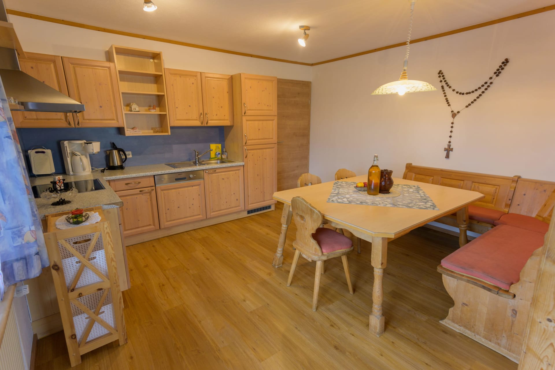 Lust auf viel Freiraum für eine große Familie oder viele Freunde? In unserer Wohnung Kuhfamilie können Sie beides vereinen. Mit Liebe haben wir die vier Schlafzimmer eingerichtet. Viel Holz spiegelt sich auch in der geräumigen Wohnküche, natürlich mit Geschirrspüler, wider. Gemütliches Beisammensitzen mit den Freunden auf unserem großzügigen Sofa. Wohlfühlen. Aber gerne. Es gibt zwei Duschen, eine für die Erwachsenen und eine für die Kinder. Erholen Sie sich auf der Sonnenseite des Lebens. Bauernhof Serner.