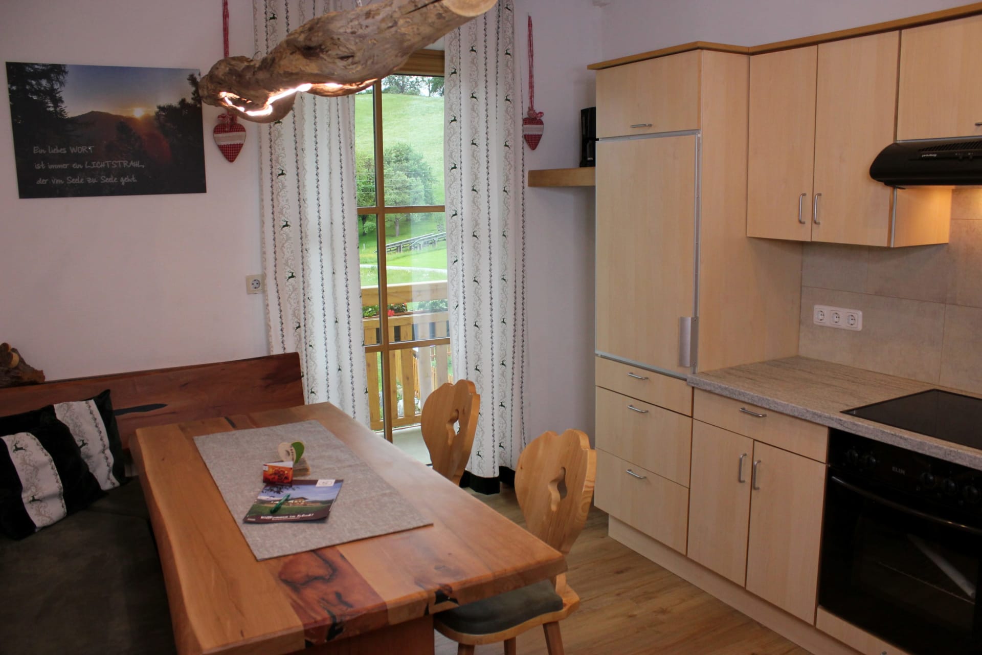 Die funktionale Küche ist praktisch und modern eingerichtet, und der große Balkon lädt zu entspannten Frühstücken in der Morgensonne ein. Hier genießt ihr in der ersten Reihe fußfrei den Blick auf die Berge der Pyhrn-Priel-Region – euer persönlicher Logenplatz für einen unvergesslichen Urlaub.