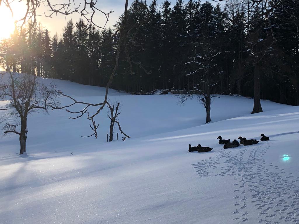 Unser Hof liegt auf 800 Metern Seehöhe, umgeben von verschneiten Wiesen, Wäldern und einer zauberhaften Winterlandschaft. Hier können Kinder toben, spielen und echte Abenteuer erleben: Schneemänner bauen, Schneeburgen errichten, mit der Rodel den Berg hinunterflitzen oder eine fröhliche Schneeballschlacht veranstalten – bei uns kennt der Spaß keine Grenzen!