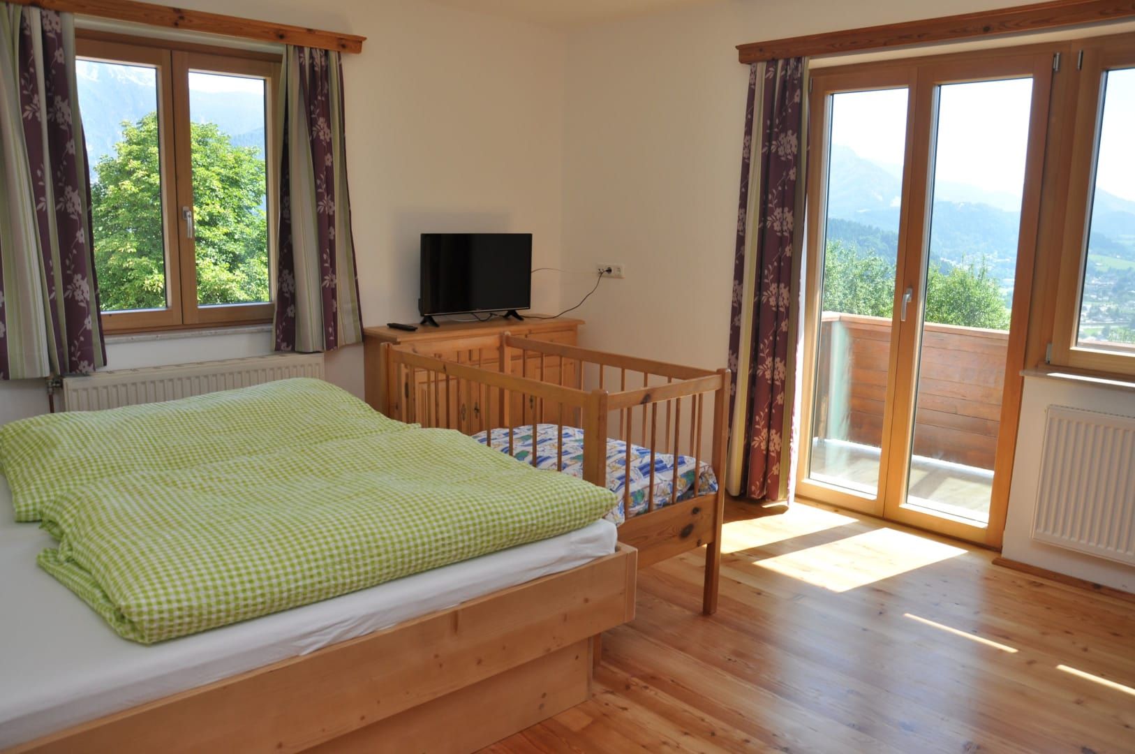 Unsere Ferienwohnung Bosruck bietet einen herrlichen Ausblick auf das Windischgarstner Tal und seine Bergwelt. Die Ferienwohnung besteht aus einer Wohnküche mit Ausziehcouch, Vorraum, einem Schlafzimmer mit Doppelbett, einem Schlafzimmer mit 2 Einzelbetten, Badezimmer und WC.