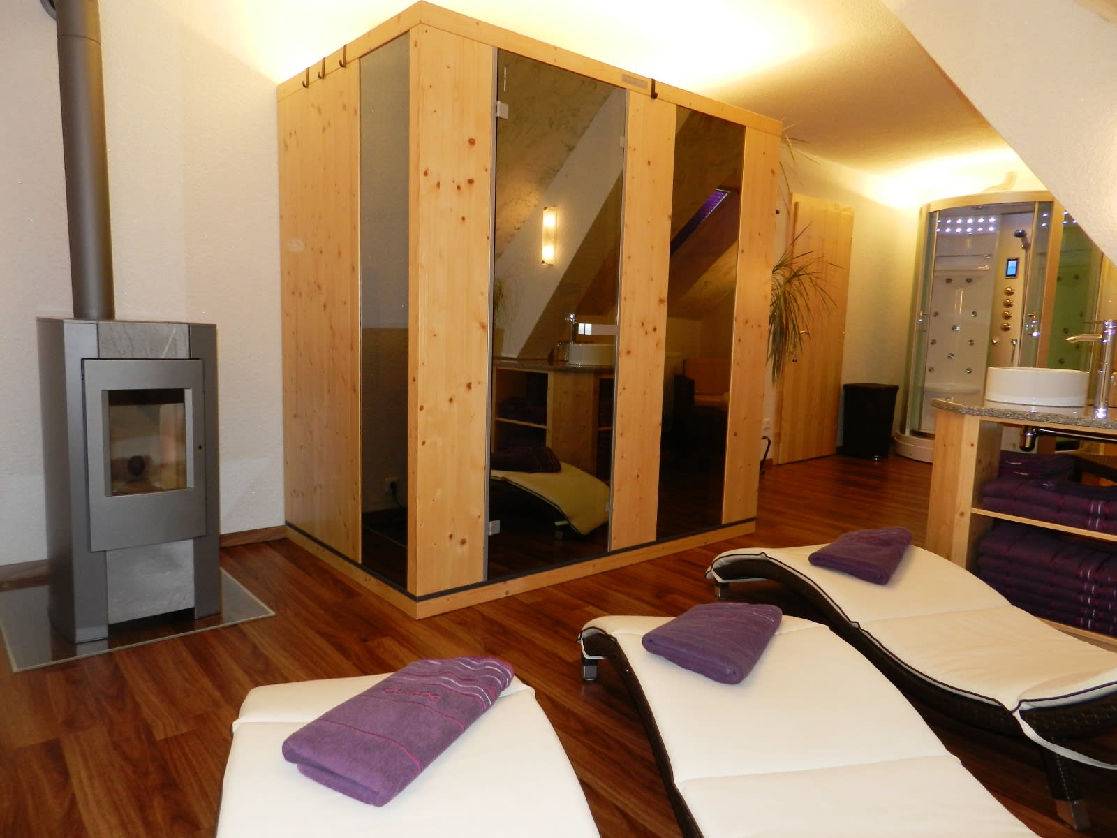 Die Sauna im Troadkasten (Außenbereich) empfehlen wir Ihnen nach einem erlebnisreichen Wintertag. Nach der Hitze geht's zum Abkühlen direkt in den Schnee hinaus, um danach im gemütlichen Ruheraum erholsame Stunden zu genießen. Unser Wellnessraum mit Infrarotkabine, Dampfdusche und bequemen Relaxliegen lädt zum Entspannen ein.