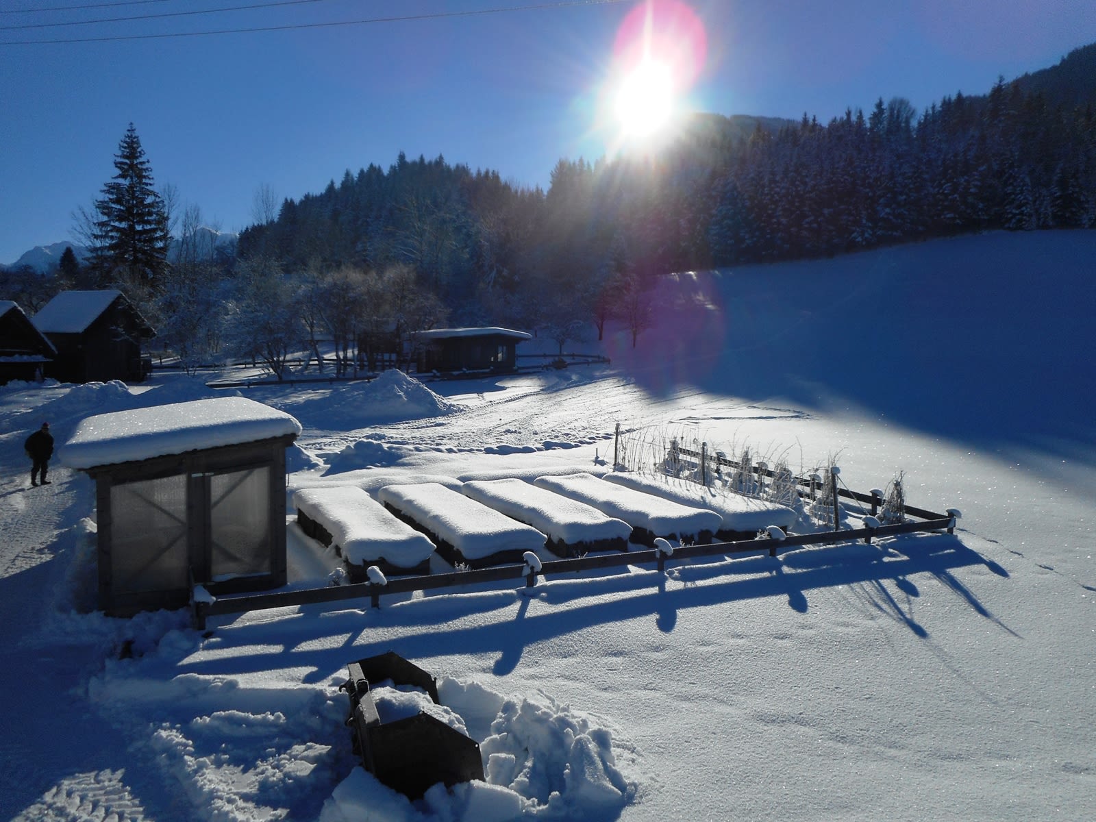 Der Hang hinterm Hof lädt zu einer lustigen Rodelpartie ein. Schlitten und Bobs stehen für Sie bereit. Am Bauernhof darf natürlich das lustige Heusackrutschen nicht fehlen. Heu und Säcke sind genug vorhanden.