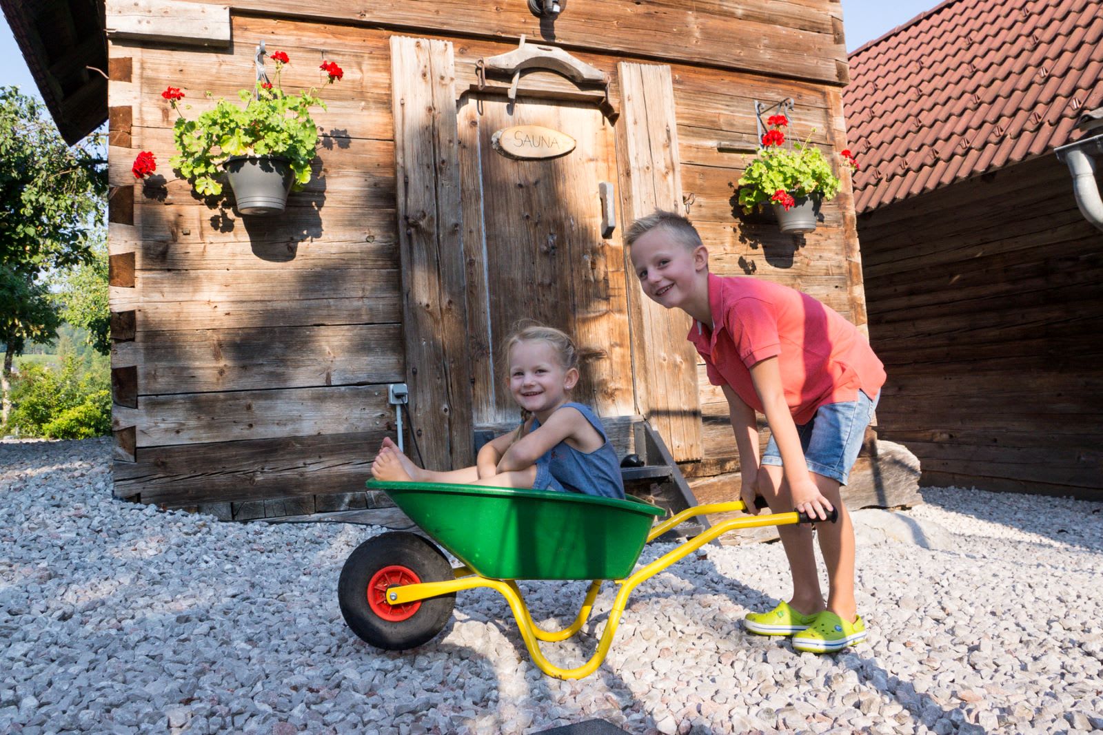 Der Hang hinterm Hof lädt zu einer lustigen Rodelpartie ein. Schlitten und Bobs stehen für Sie bereit. Am Bauernhof darf natürlich das lustige Heusackrutschen nicht fehlen. Heu und Säcke sind genug vorhanden.