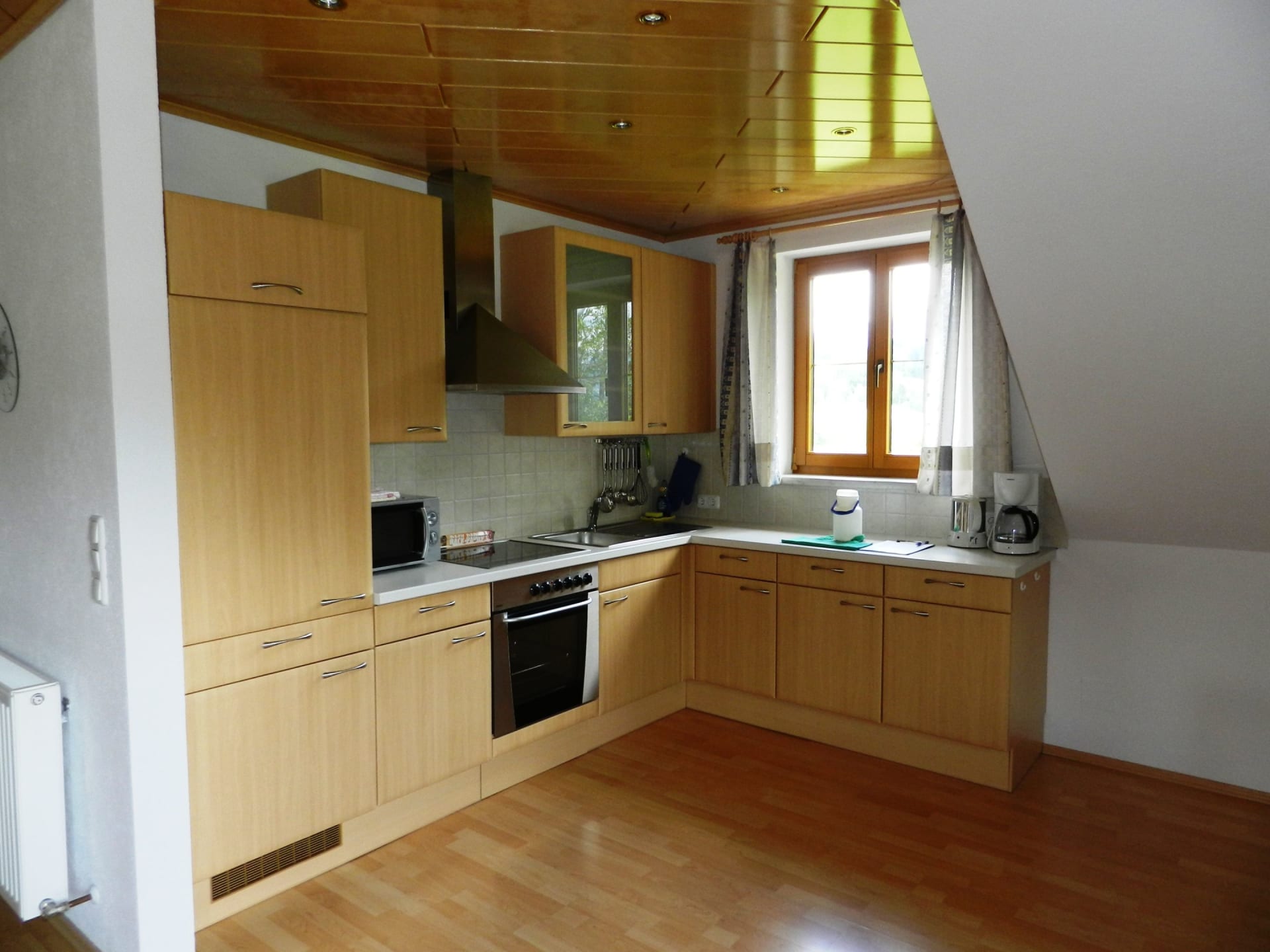 Sehr geräumige Ferienwohnung für bis zu 7 Personen mit einem Vorraum, Dusche, WC getrennt, einen großen Wohnraum mit Essecke, eine Küche mit Geschirrspüler und Mikrowelle, ein Doppelbettzimmer mit Balkon und ein Kinderzimmer mit 3 Einzelbetten. Babyausstattung ist jederzeit möglich.