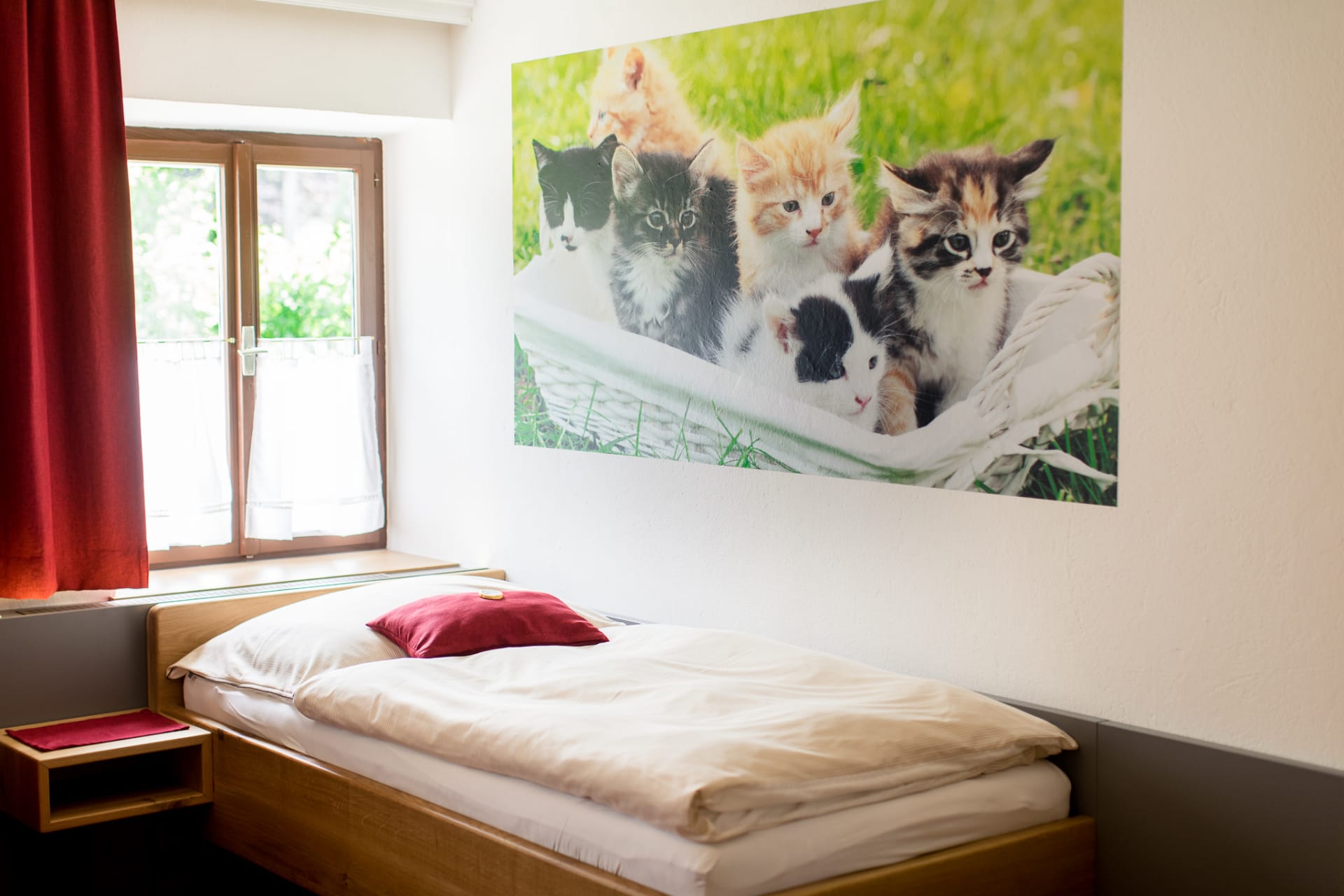Die Ferienwohnung „Katzenstube“ ist südseitig - dort, wo Sie die Sonnenstrahlen morgens kitzeln, mit eigener Terrasse für romantische Stunden zu zweit.