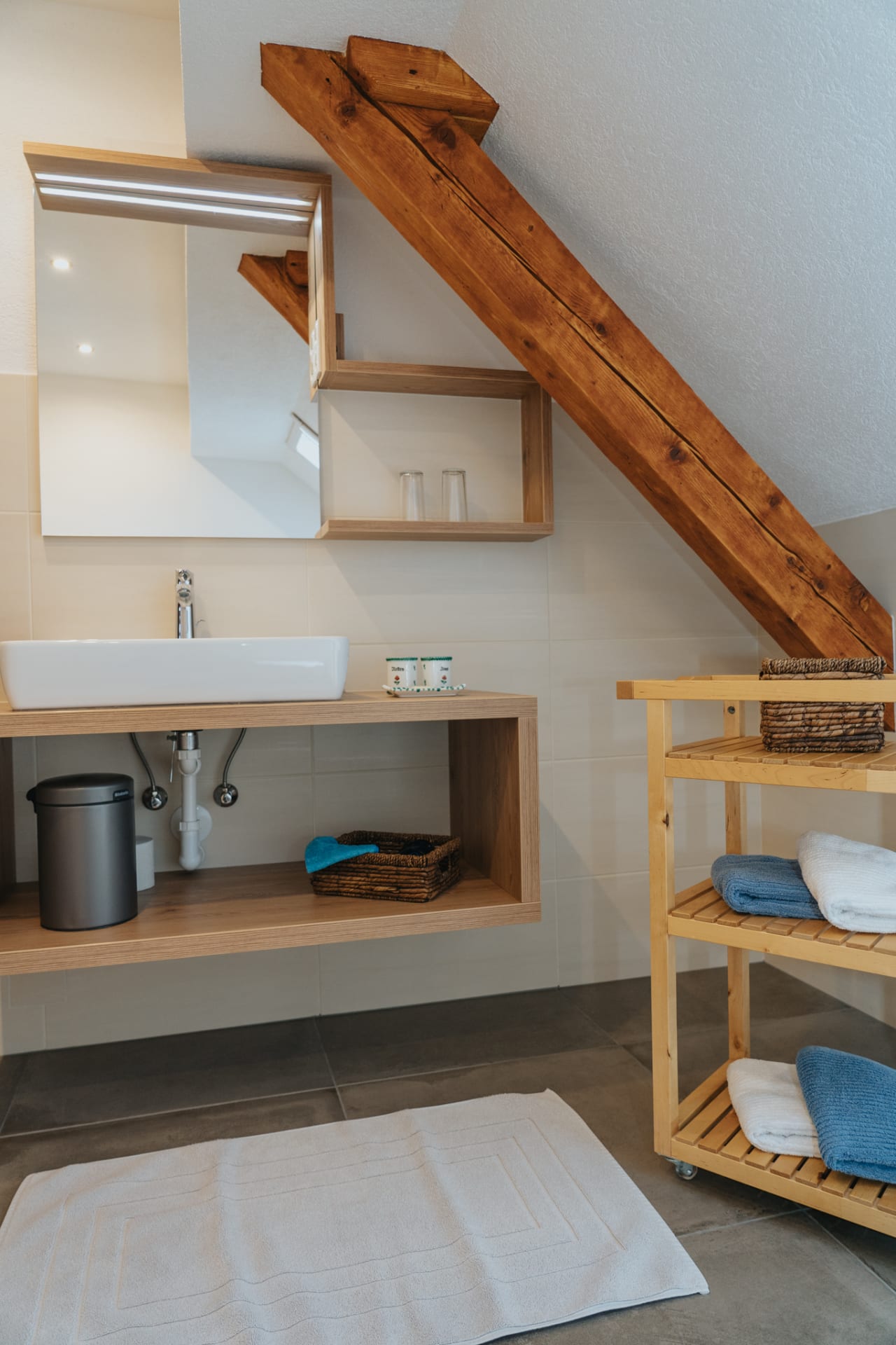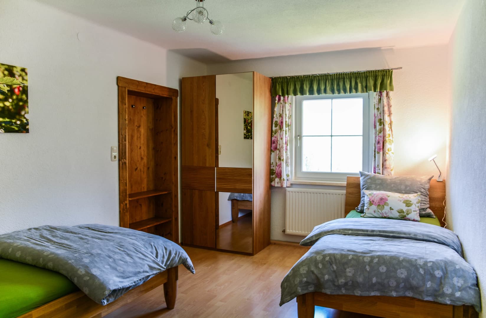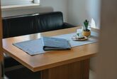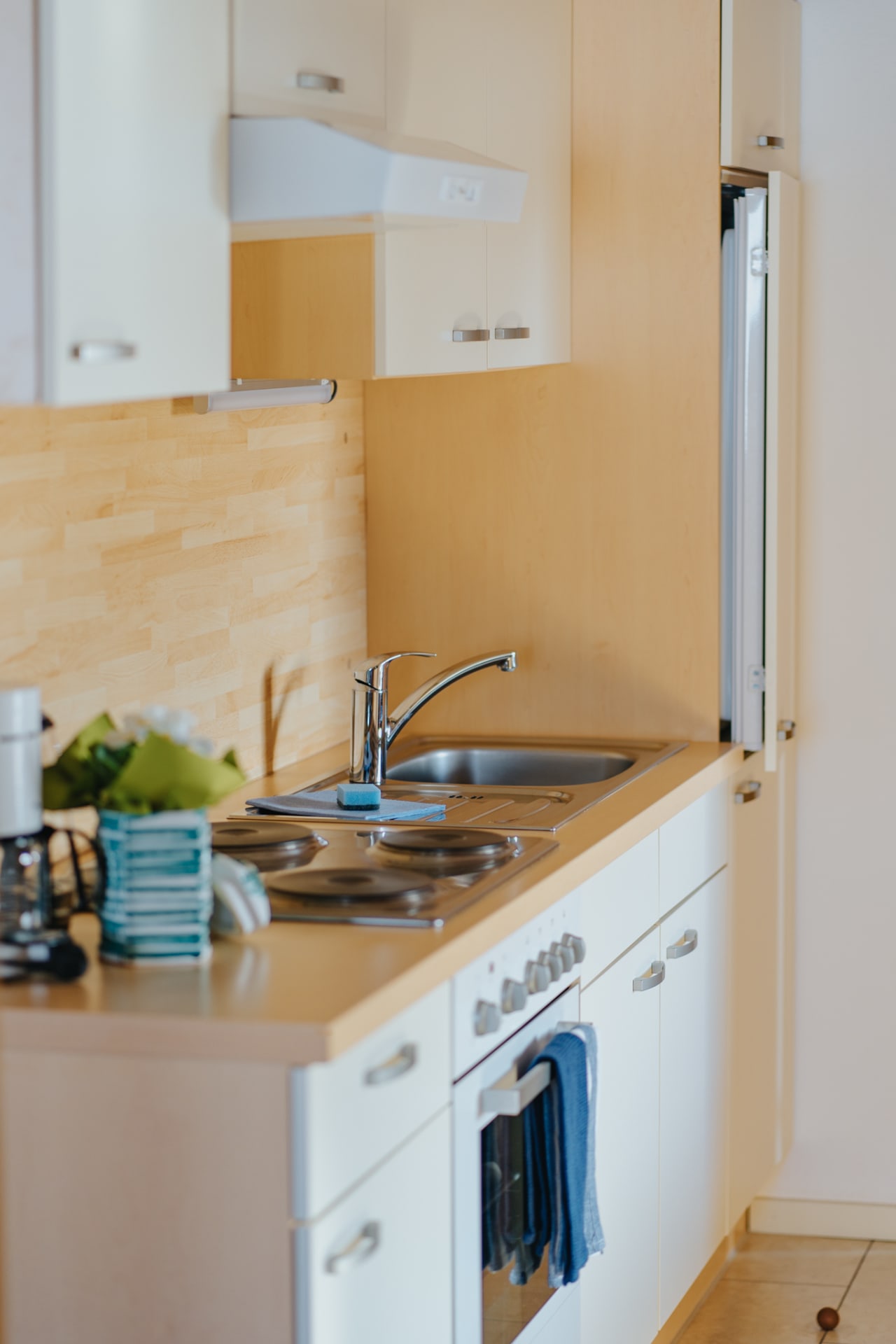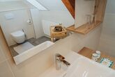 Eine geräumige Wohnküche mit sehr gemütlicher Sitzecke heißt Sie in dieser Ferienwohnung willkommen. Es gibt zwei seperate Schlafzimmer mit Doppelbetten und ein Bad mit Tageslicht, wo Platz genug für alle ist. Die Küche in dieser Ferienwohnung ist voll ausgestattet und bietet neben einem Backrohr und einer Kühl-Gefriermöglichkeit auch eine Kaffeemaschine und einen Wasserkocher. Es gibt einen Flachbildferneher und Wlan im ganzen Haus. Am Balkon können Sie am Morgen schon die Sonne genießen.