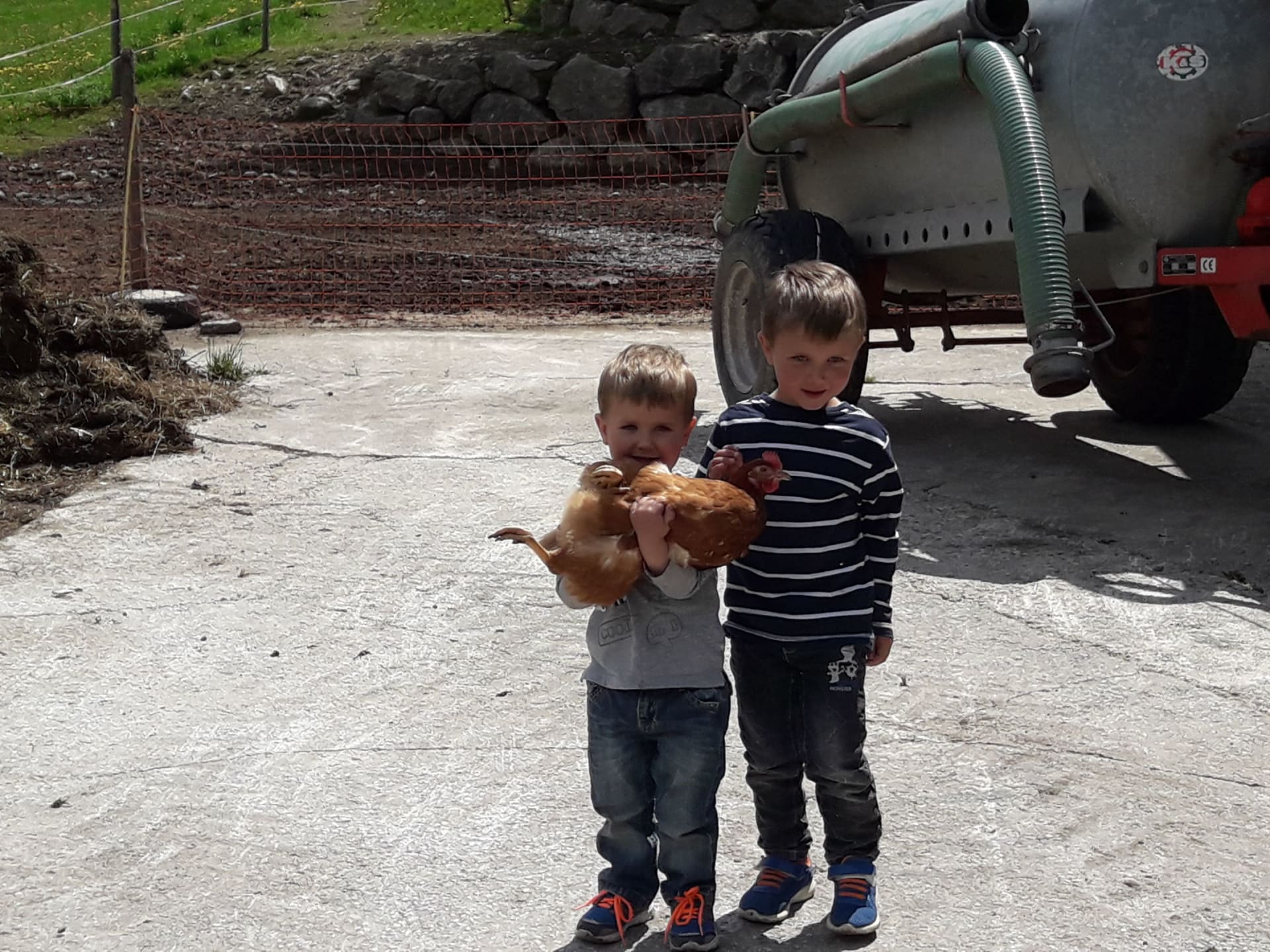 Genießen Sie ein paar Kuscheleinheiten mit unseren winterlich dicken Katzen und helft mit beim Kühe füttern. Auch das Schneeräumen mit dem Traktor bringt immer viel Spaß. Beim Schneeschuhwandern oder Langlaufen können Sie direkt bei uns vom Hof weg den Winter genießen.