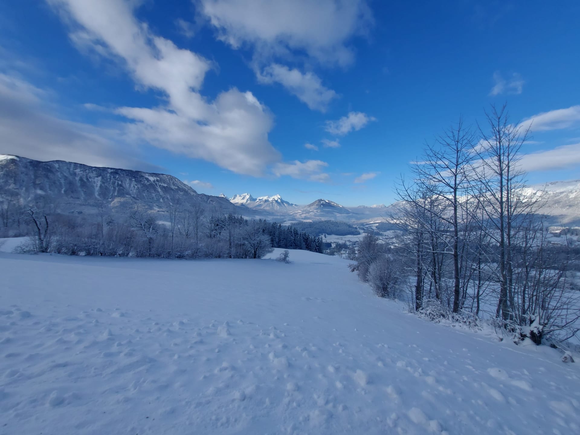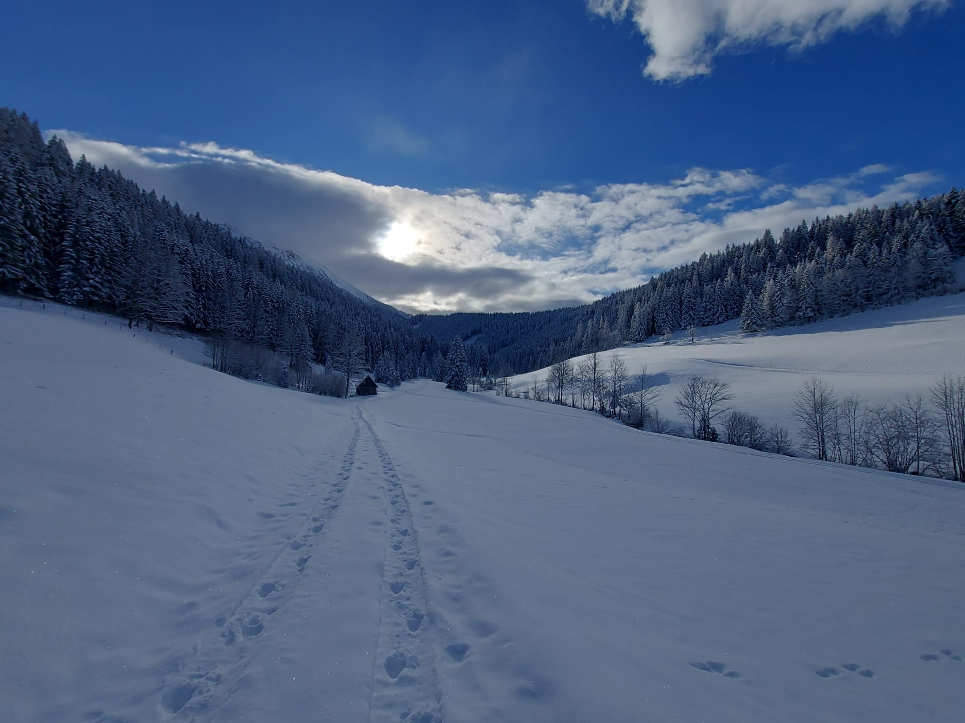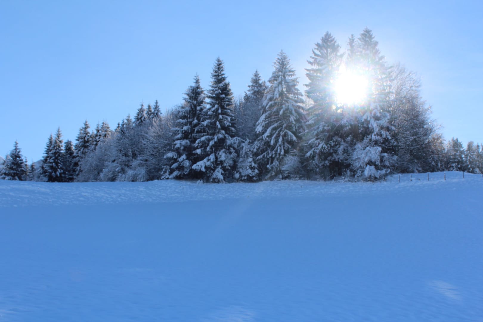 Die Kleinsten können gleich direkt beim Haus über die Rutschwiese sausen, während die Großen die Ruhe und Schönheit des frischen Schnees genießen.