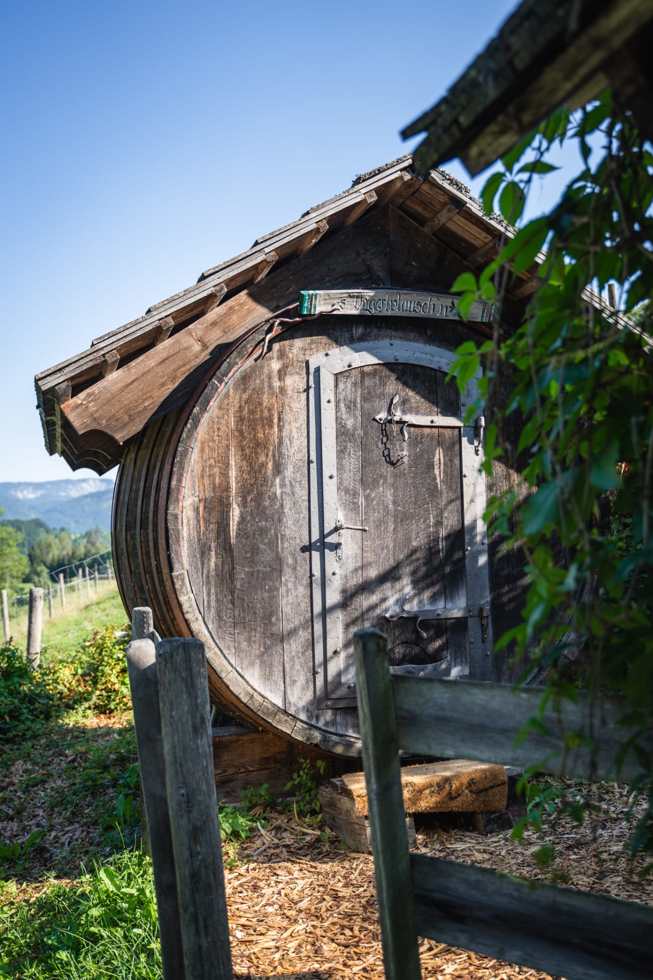 Vogerlplauschen und Bacherlrauschen - das Schlaferlebnis der besonderen Art. Das ist bestens geeignet für verschiedene Anlässe als Geschenk oder Gutschein oder wenn man einmal etwas anderes machen möchte mit der Familie oder zu zweit. Es gibt 2 Holzfässer, die ca. 150 m vom Bauernhaus entfernt stehen. Verpflegung gibt es natürlich in der Jausenstube. Ein Badezimmer haben wir im Nebengebäude eingerichtet. Und für Naturliebhaber? Die können sich natürlich auch im Bach erfrischen.