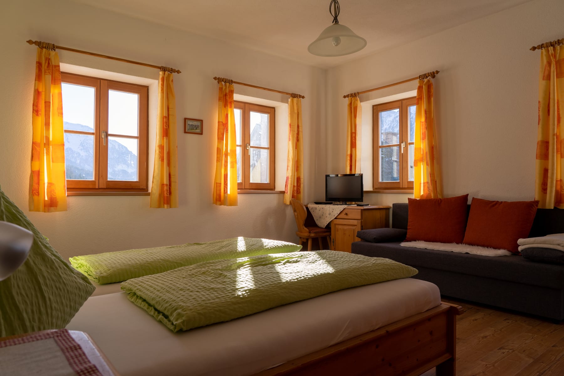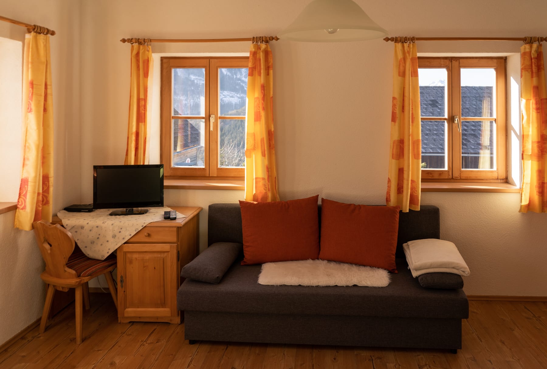 Die zwei Ferienwohnungen und ein Doppelzimmer sind liebevoll und mit viel Holz eingerichtet. Sie bieten Platz zum Wohlfühlen. In der Wohnküche der Ferienwohnung Bergzauber sorgt ein Holzofen für eine angenehme Atmosphäre, zwei Schlafzimmer und ein geräumiges Bad sowie ein Balkon mit Panoramablick erwarten Sie! In der Ferienwohnung Zirbentraum schlafen Sie in einem gesundheitsfördernden Zirbenbett.