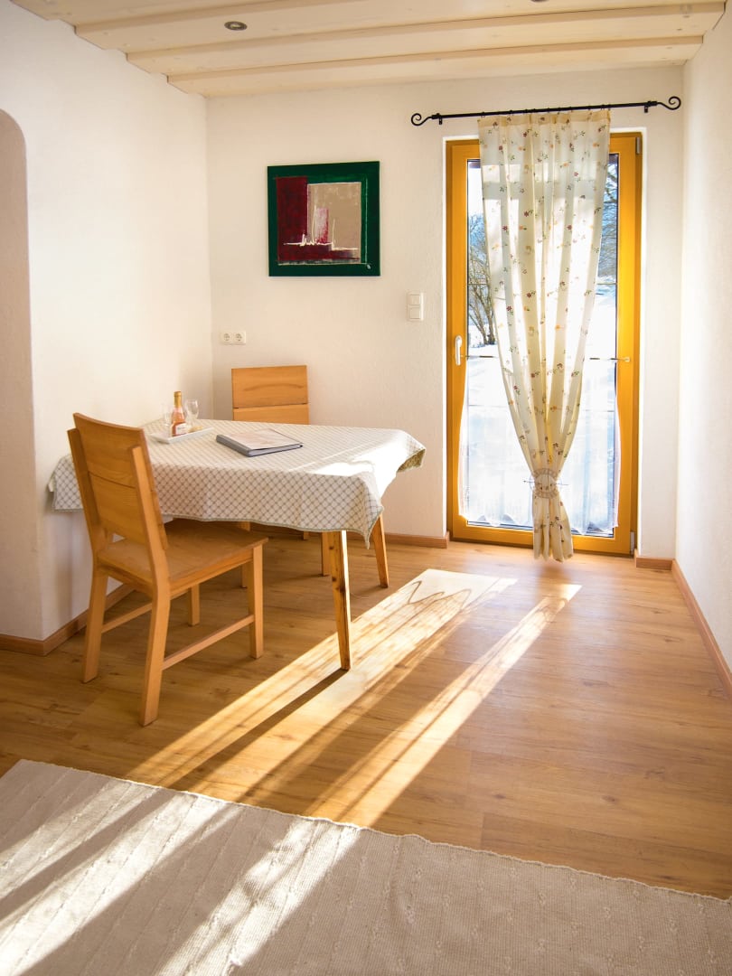 Unsere kleinste Ferienwohnung bietet Platz für 2 Personen. Sie liegt im EG des Gästehauses. Mit ihrer gemütlichen Einrichtung ist sie perfekt für erholsame Stunden zu zweit. Die Wohnung ist aufgeteilt in ein Schlafzimmer mit DU/WC und einen kleinen Wohnraum mit Küchenblock. Für Allergiker geeignet.