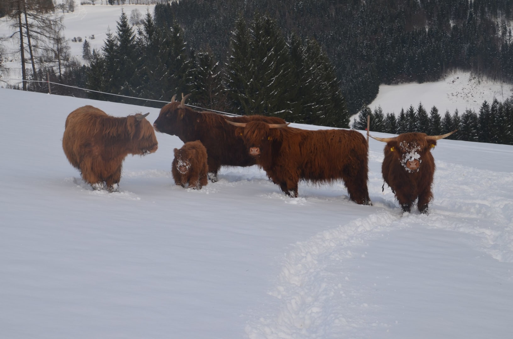 Genießen Sie bei uns im Winter einen der sonnigsten Plätze des Stodertales und das herrliche Bergpanorama. Unser Hof liegt auf 800 Meter Seehöhe, an einem wunderschönen Winterwanderweg mit Bänken, welche bei Sonnenschein zum Verweilen einladen. Nach einem erfüllten Tag in herrlicher Winterlandschaft können unsere Gäste sich mit den Tieren wie Kälbern und Lämmern, Katzen und Hasen vertraut machen. Weiters ist es möglich, uns zur Wildfütterung zu begleiten. Bei passender Witterung ist Naturrodeln bei Fackellicht eine besondere Attraktion.