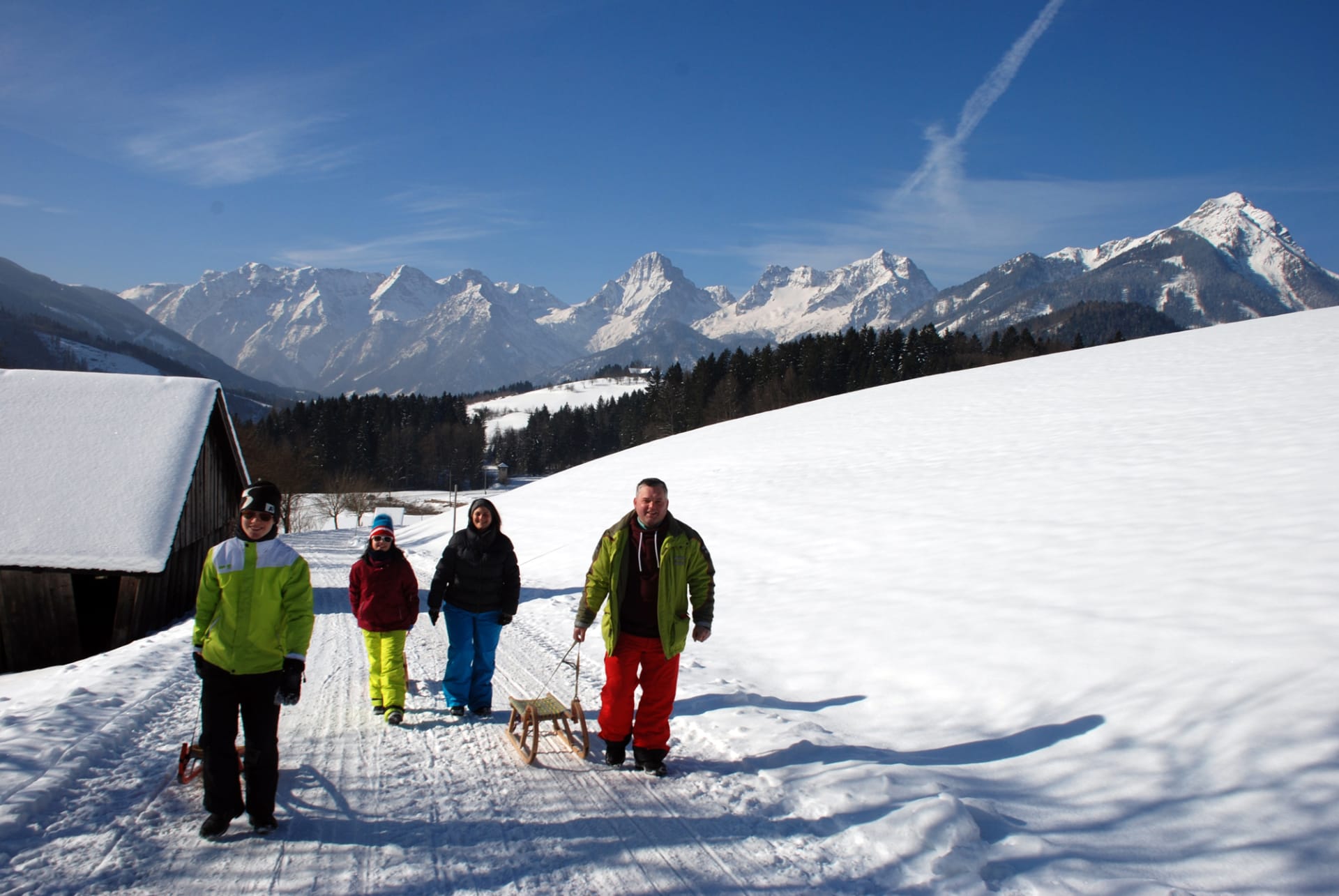In der Region ist nur fünf Kilometer von unserem Hof das Schigebiet Hinterstoder Höss erreichbar. Es gibt ebenso einige Loipen und geführte Schneeschuhwanderungen.