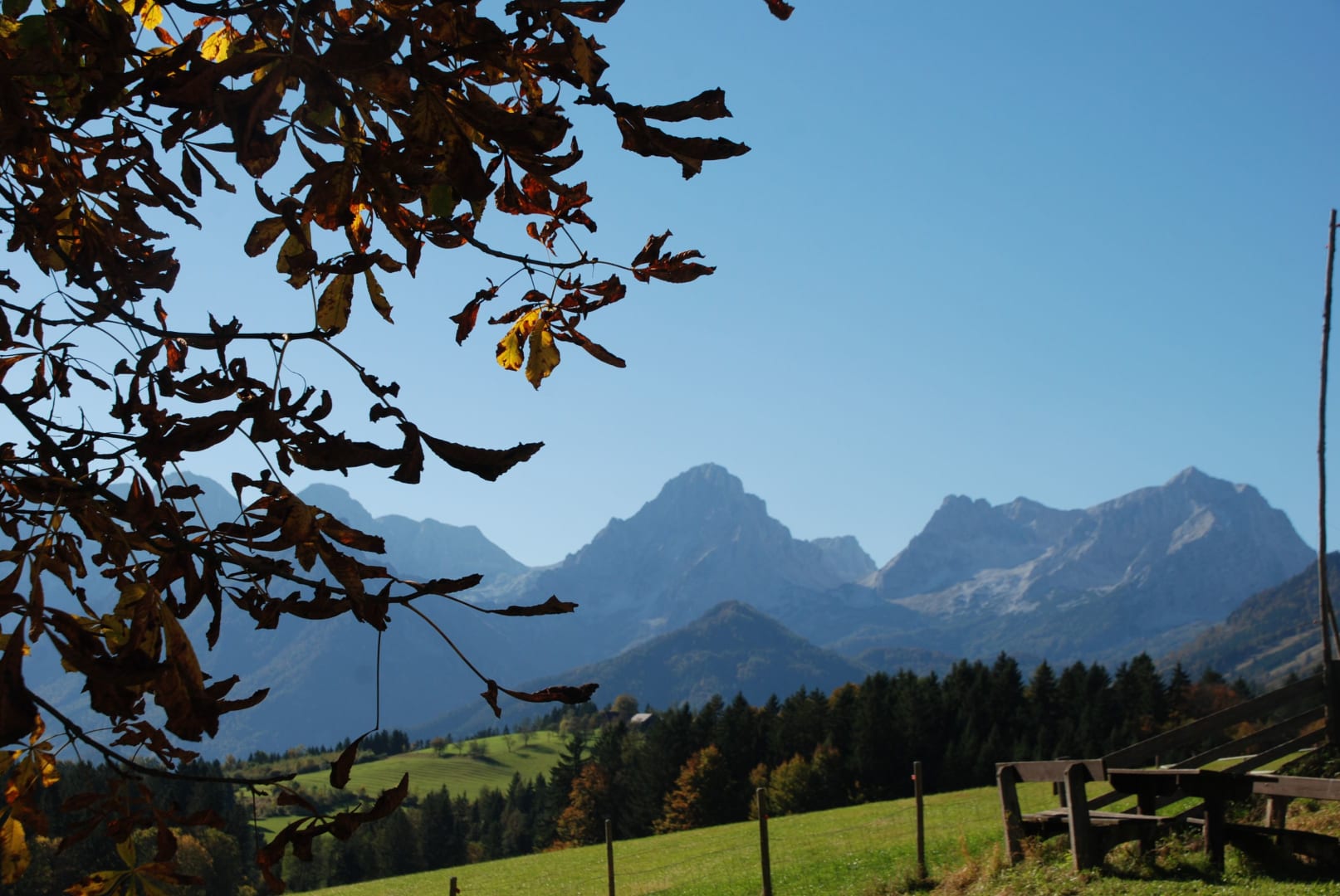 Unser Bauernhof liegt auf einem sonnigen Höhenrücken mit wunderschöner Aussicht auf das Tote Gebirge.