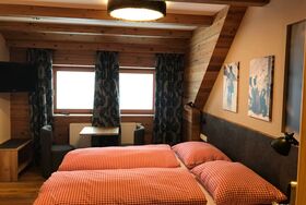 Gemütliches Familienzimmer mit 2 getrennten Schlafzimmern. Ausgestattet mit Dusche/WC, Sat-TV, Wlan.