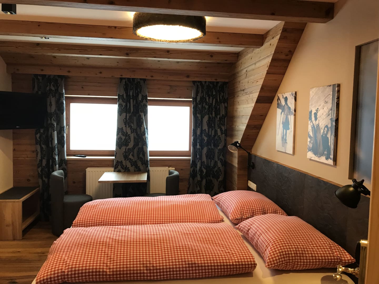 Gemütliches Familienzimmer mit 2 getrennten Schlafzimmern. Ausgestattet mit Dusche/WC, Sat-TV, Wlan.