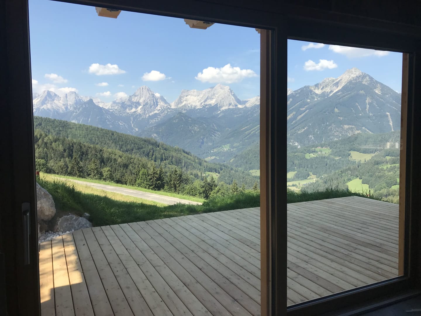 Genießen Sie die einzigartige Aussicht auf die Stodertaler Berge und den gemütlichen Flair in unserem Panoramachalet, das ca. 150 m² groß ist und Platz für bis zu 11 Personen bietet. 3 getrennte Schlafzimmer, 3 Badezimmer, Küche, Wohn-/Essbereich, große Glasfronten, Panoramabalkon, Terrasse und Sat-TV versprechen einen gemütlichen Urlaub in den Bergen auf 1.020 m Seehöhe. Etwa 40 m von den Hütten entfernt befindet sich unser Haupthaus.