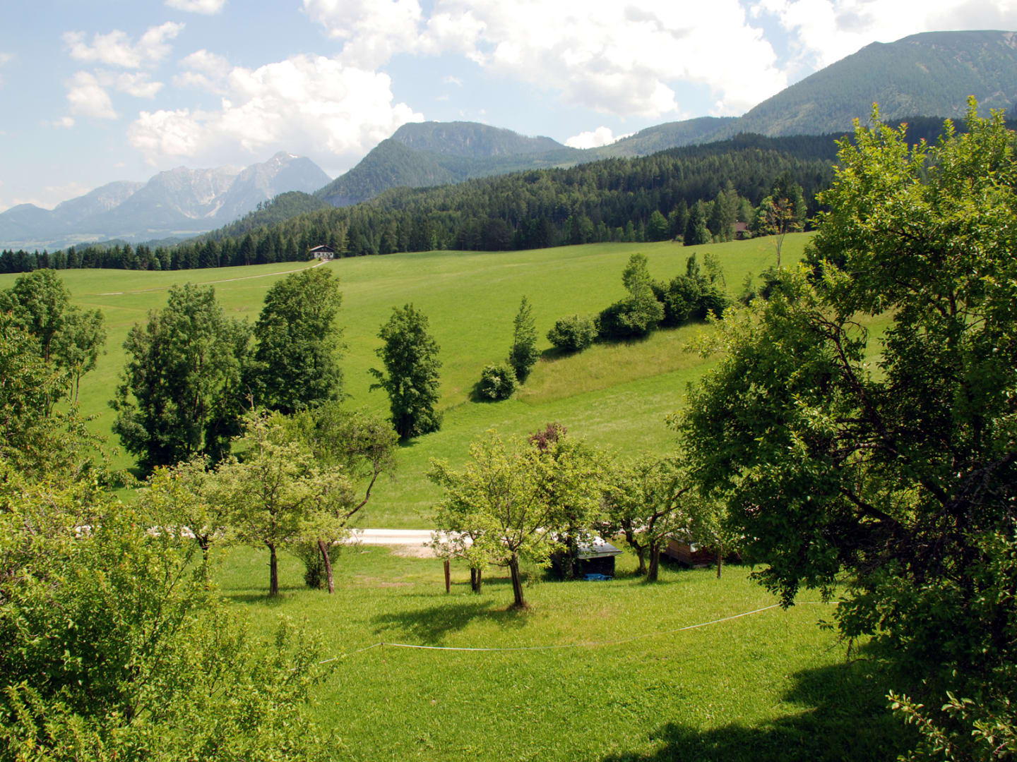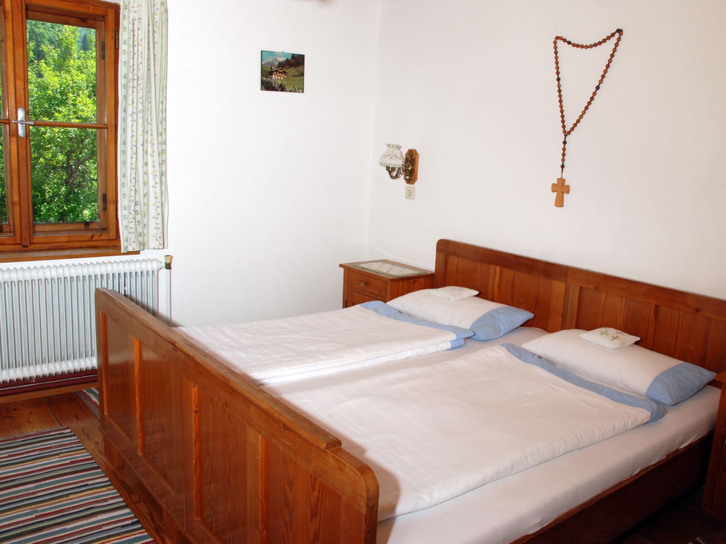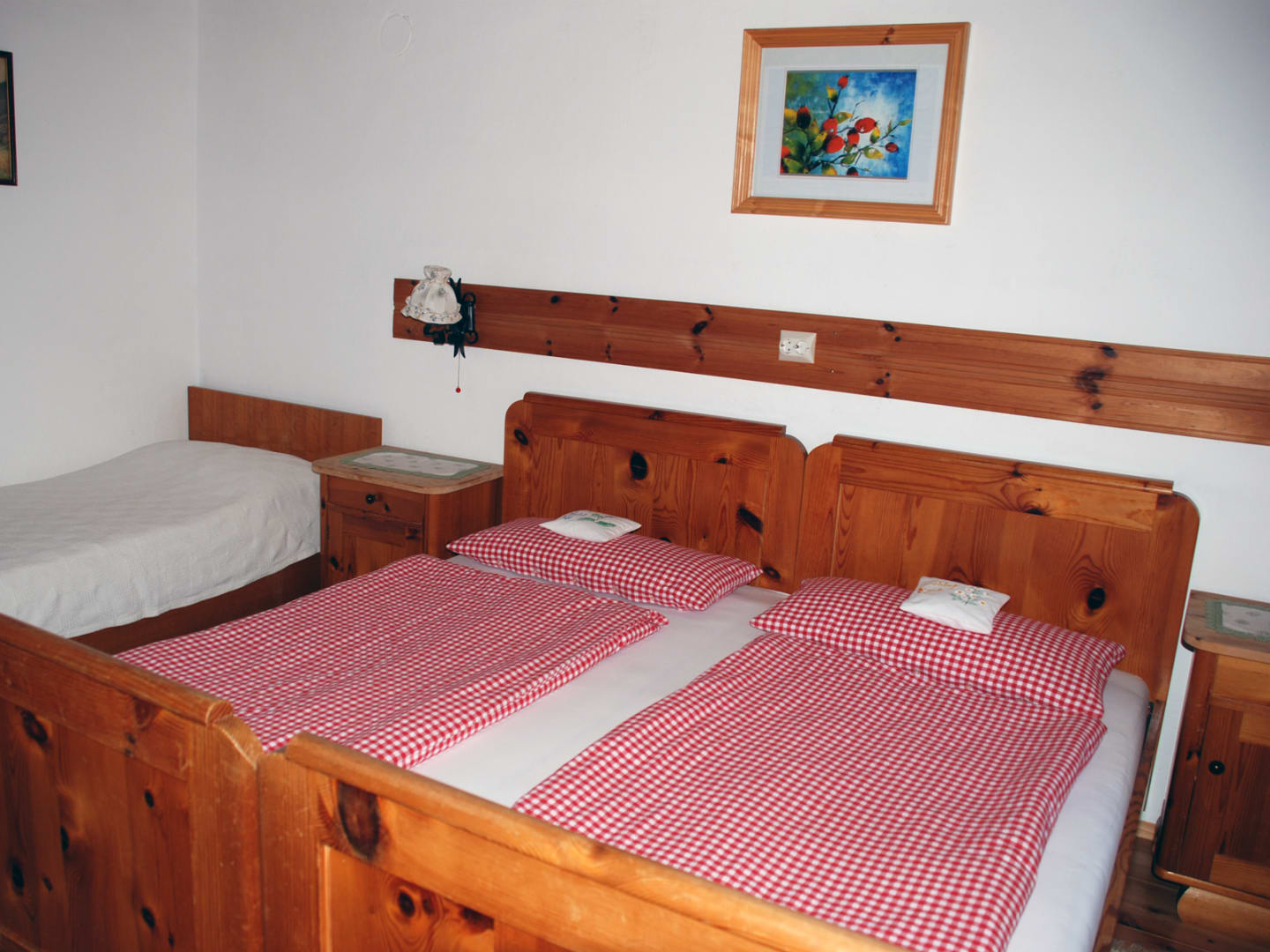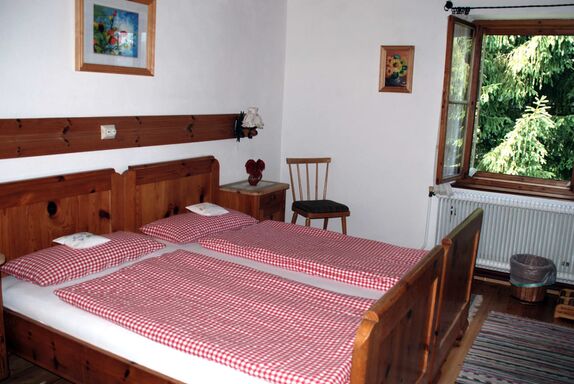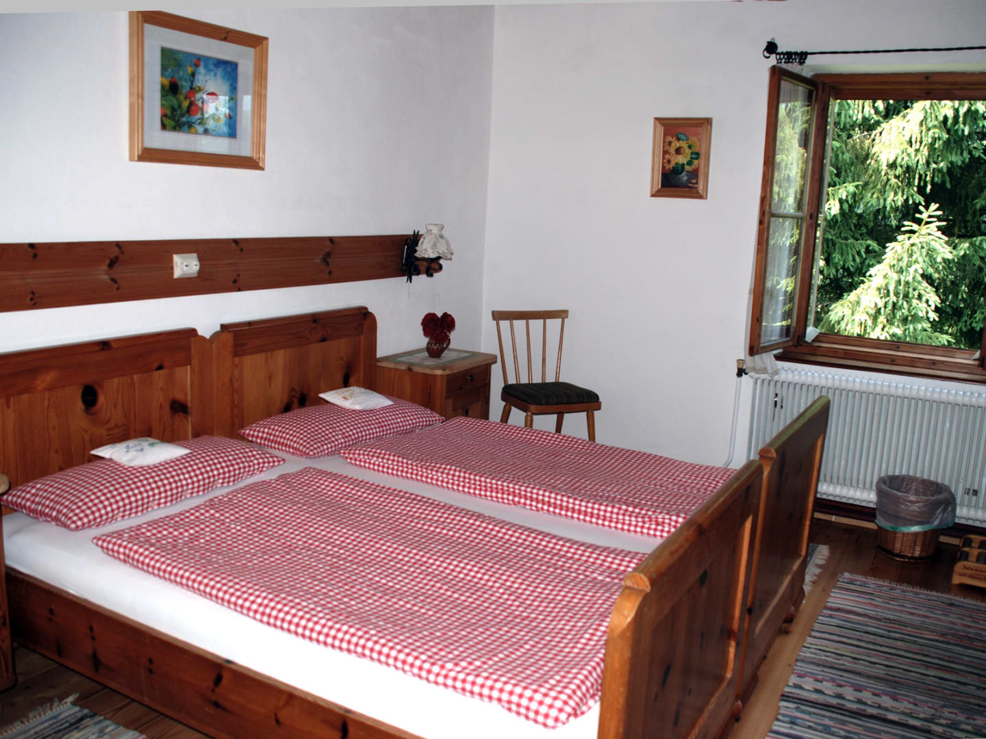 Mit rustikalen Vollholzmöbeln eingerichtetes Dreibettzimmer - mit Lärchenholzboden, Antiallergiematratzen, Schafwollkissen und kuscheligen Mais-Lyozelldecken. Vom Baumwollfleckerlteppich bis zum Bett ist alles waschbar und daher für Allergiker bestens geeignet. Genießen Sie den Blick auf Sengsengebirge, Wald und Wiesen.
