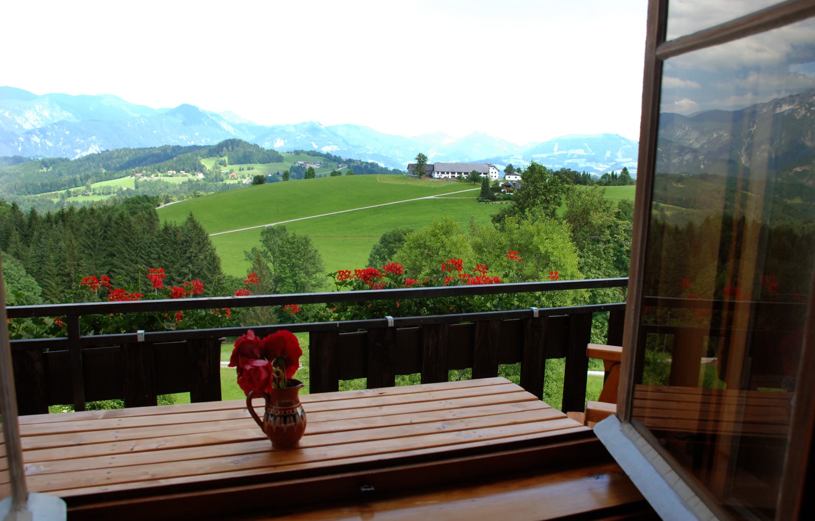 URLAU B dich g'sund!Auf einem sonnigen Höhenrücken, in Einzellage auf 810 m Seehöhe, weitab vom Großstadtlärm, liegt unser idyllischer Biobauernhof Rotbuchner. Mit herrlicher Aussicht und Kühen, Kälbern, Katzen, Hasen, einem Pferd, Hühnern und einem Hahn und Hofhund Blacky.
