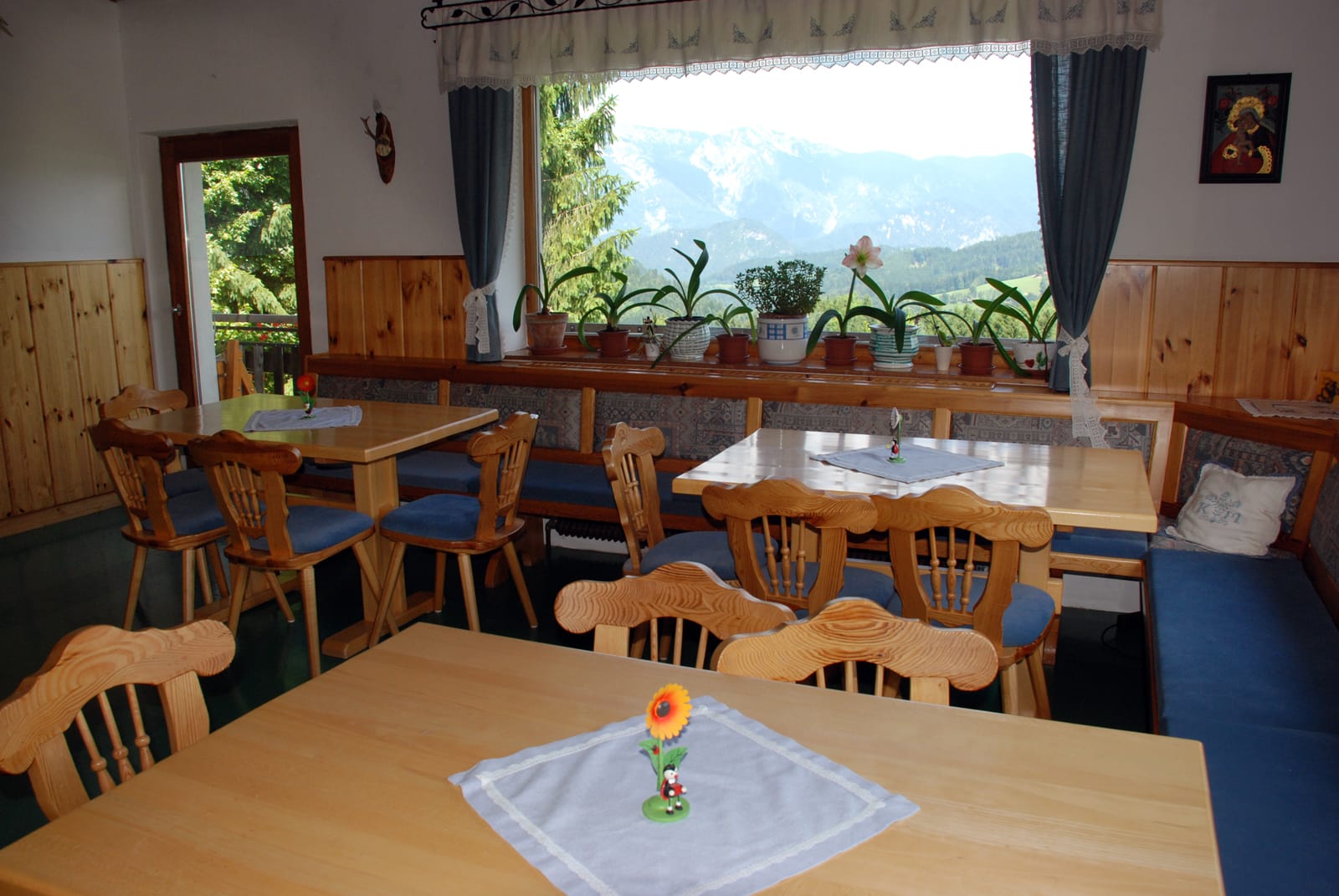 Mit rustikalen, gebürsteten, geölten Massivholzmöbeln augestattete Wohnung, bestehend aus einem Vorraum, zwei Schlafzimmern mit je einem Doppelbett, gemütlicher Zirbenholzstube mit ausziehbarer Bettbank und Kochnische (mit Wasserkocher, Back- und Grillöfchen, 2 E-Kochplatten, Kühlschrank mit kleinem Gefrierfach, Filterkaffeemaschine, Toaster), Dusche/WC und Balkon. In allen Räumen Lärchenholzböden. Genießen Sie den Panoramablick über das Windischgarstnertal und die umliegenden Berge und den Sonnenaufgang direkt vom Bett aus!