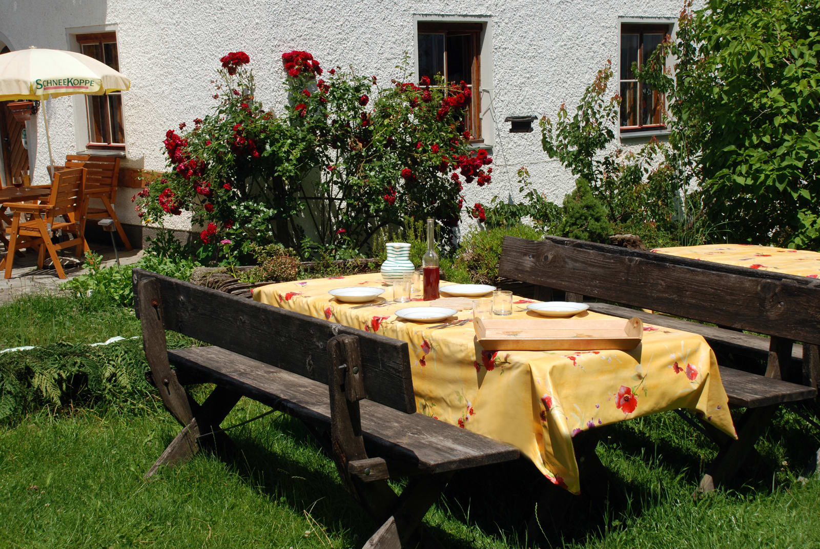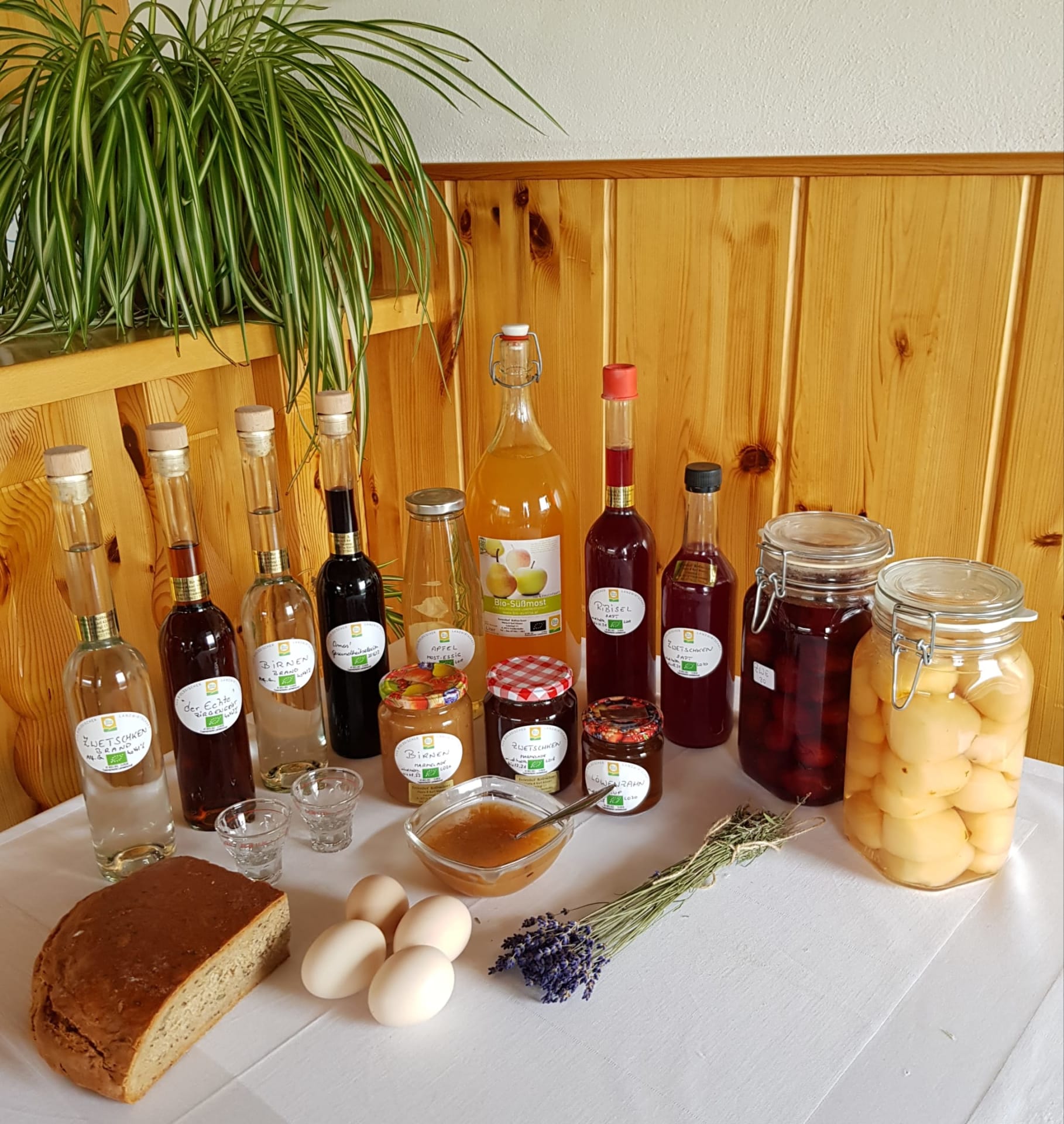 • Wir bieten folgende Verpflegung am Betrieb: Bio- Gutsherrenfrühstück, Produkte vom eigenen Hof (Brot, Joghurt, Marmeladen, Säfte, Schnäpse, Liköre, je nach Jahreszeit Kräuter)